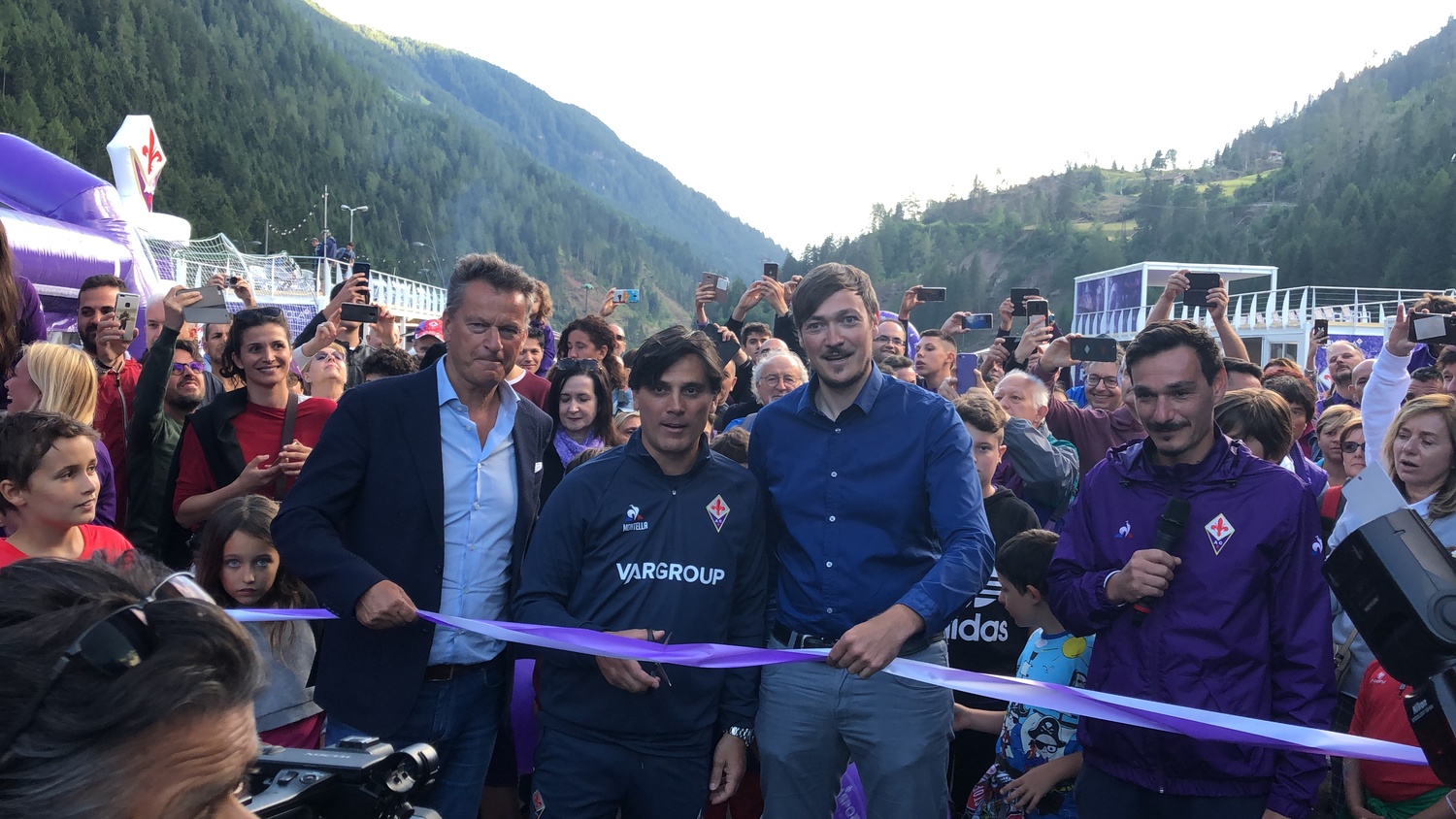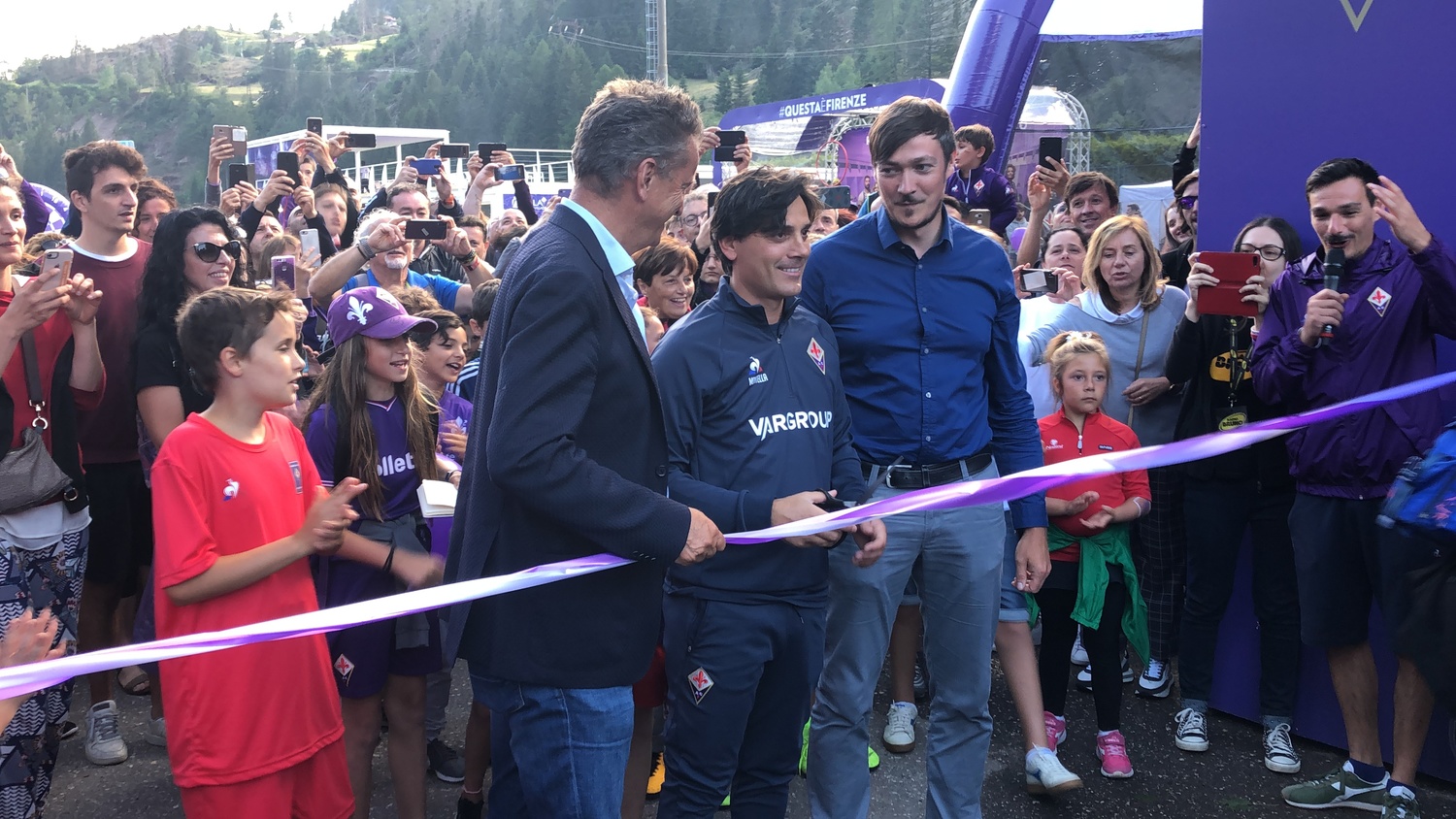 Il mister Vincenzo Montella dopo l'allenamento si è dedicato all'inaugurazione del Viola Village con il taglio del nastro organizzata dallo staff. Con lui anche il sindaco di Moena e il presidente dell'ATP Val di Fassa. Questi i video e le foto realizzati da FirenzeViola.it