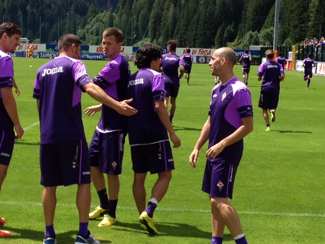 12:20 - Partitella in famiglia a centrocampo per i viola che ieri non hanno preso parte all'amichevole contro La Fiorita. Il resto della squadra è ancora impegnato con scatti ed allunghi