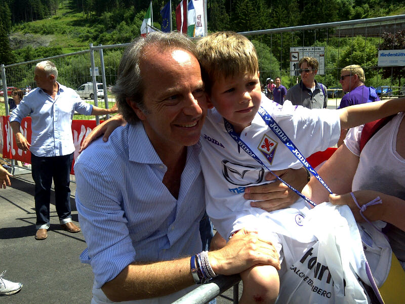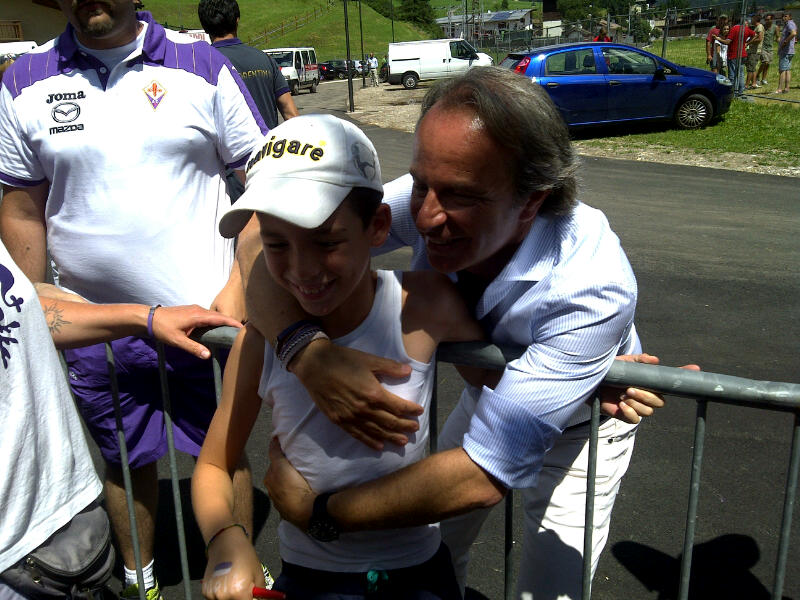 Andrea Della Valle torna bambino. Basta guardarlo in faccia, l'espressione contenta, giuliva di essere tra i suoi tifosi. In gran bambini, accompagnati dai genitori, tutti rigorosamente con la maglietta della Fiorentina. Viola o bianca, non fa differenza. Ecco alcuni scatti esclusivi di Firenzeviola.it Il primo è con Irene e Andrea. Poi è la volta di Federico, Matteo 3 anni di Reggio Emilia, quindi del piccolo Pietro, portiere in erba, grande amico di Seba Frey.