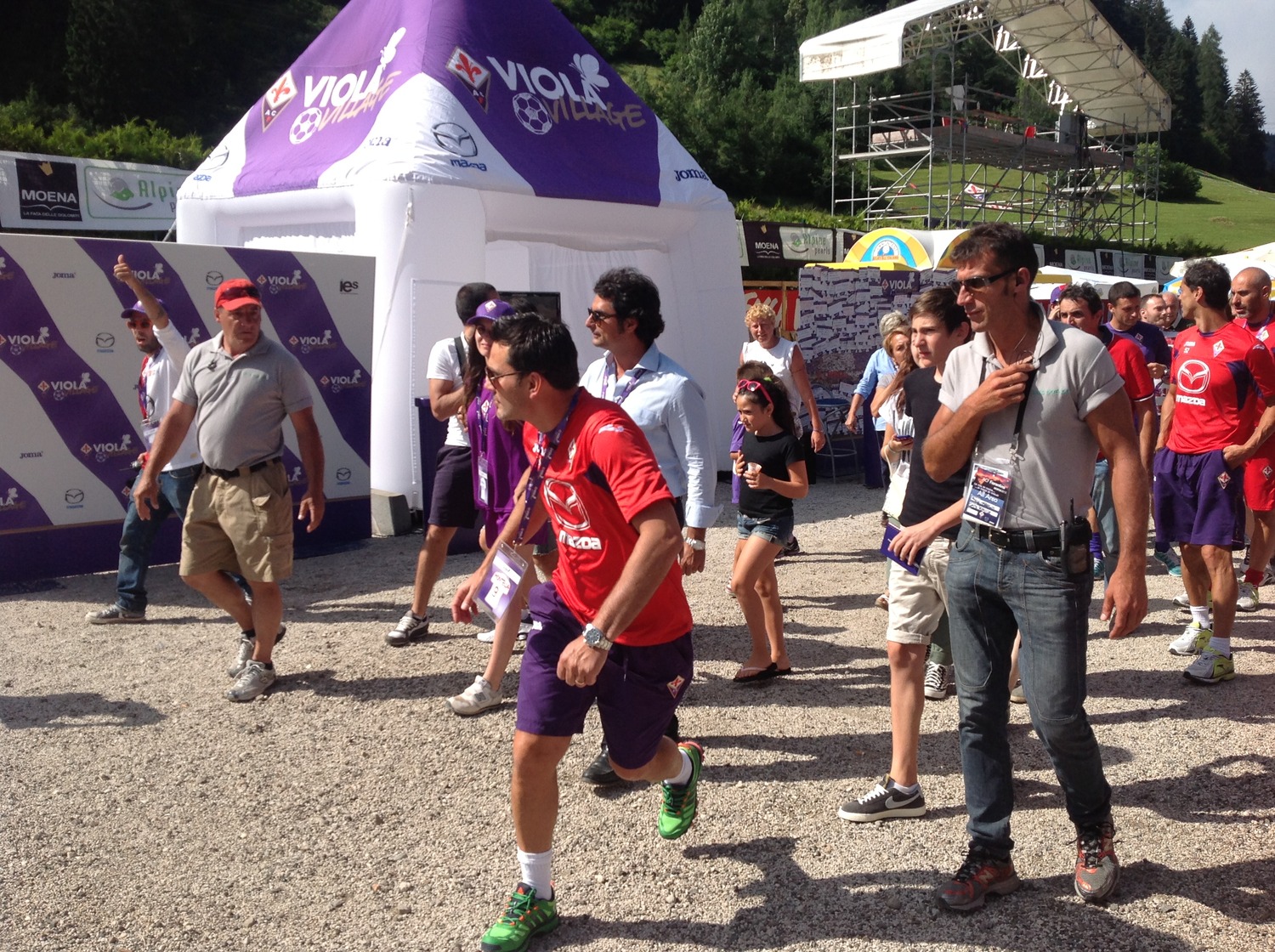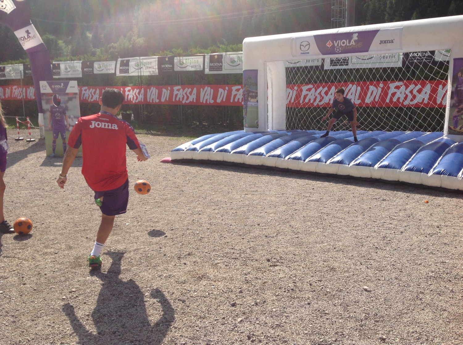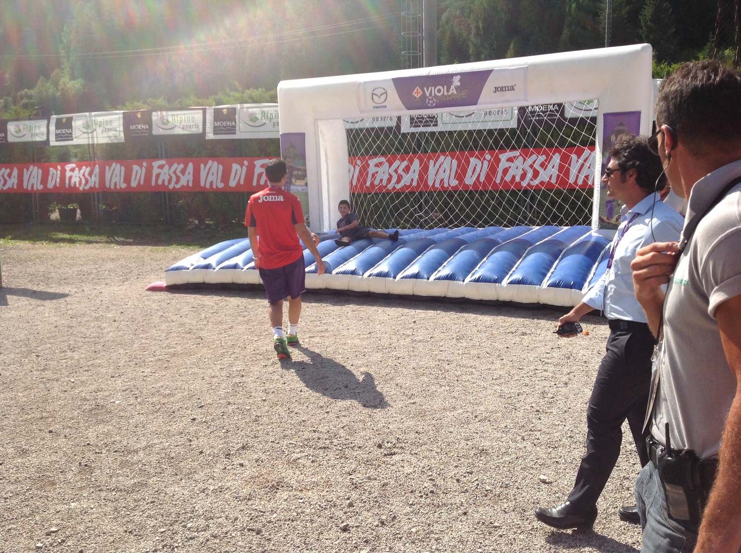 Prima di cimentarsi, insieme ad Andrea Della Valle, lo staff gigliato, capitan Pasqual e ad alcuni tifosi presenti, in una partita nel maxi calcio balilla, all'interno del Viola Village, Vincenzo Montella ha voluto scherzare con un bambino. Sempre all'interno dell'area giochi adiacente al campo sportivo "Cesare Benatti", sono stati infatti sistemati alcuni giochi gonfiabili dove i bambini possono tuffarsi e divertirsi simulando di essere estremi difensori. L'aeroplanino non si è fatto sfuggire l'occasione e ha calciato verso la porta "difesa" da un piccolo tifoso viola. Ecco le foto di Firenzeviola.it: