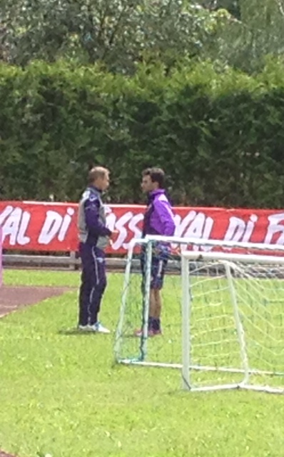 Al termine della prima parte dell'allenamento, Pepito Rossi si è soffermato a parlare con il preparatore atletico Emanuele Marra. Un breve colloquio prima di rientrare in palestra