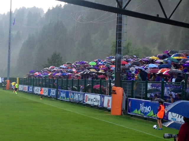 Dopo un primo tempo giocato senza che la pioggia disturbasse i giocatori in campo, la ripresa è stata caratterizzata fin dalle prime battute da una pioggia battente. I tifosi sugli spalti non demordono e ad ombrelli aperti continuano a seguire la gara senza lasciare la tribuna.