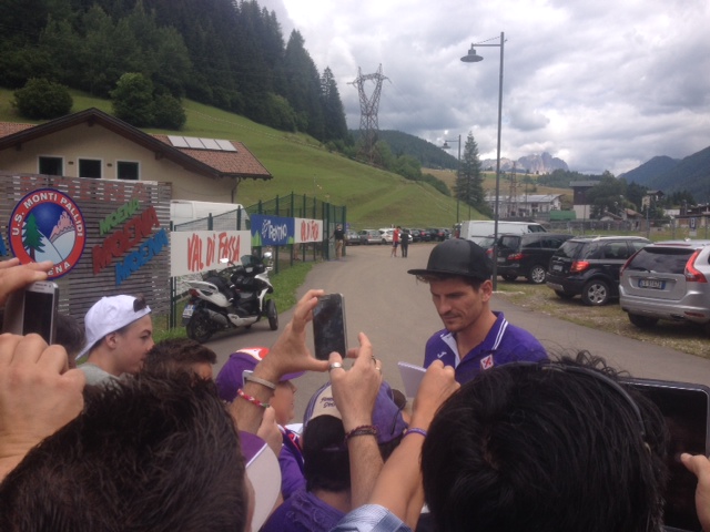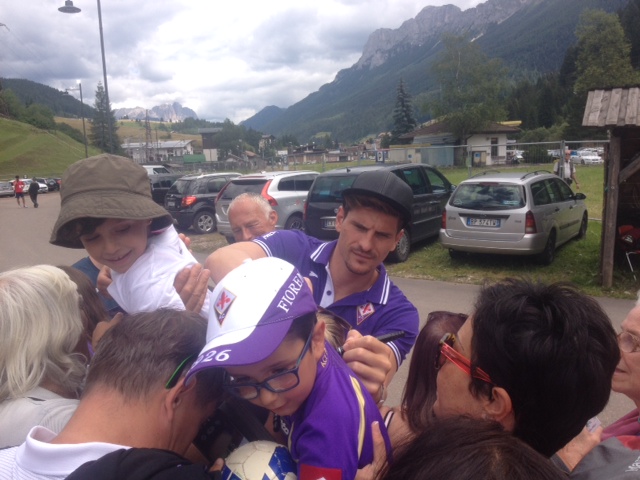 Queste le foto ed il video di Firenzeviola.it con Mario Gomez sommerso di affetto dai tifosi della Fiorentina presenti a Moena nel corso della breve parentesi dedicata agli autografi dopo la seduta di questa mattina: