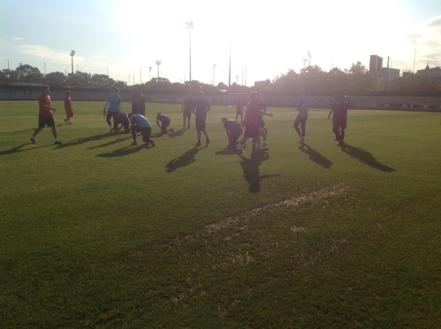 18:20 - Squadra divisa in due gruppi: da un lato i viola che hanno giocato contro il Catania svolgono un lavoro di scarico, dall'altro il resto della squadra