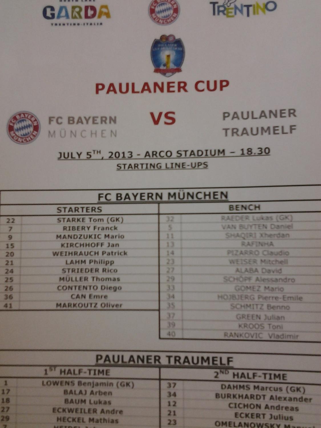 BAYERN MONACO: Starke, Lahm, Kirchhoff, Streider, Contento, Markouts, Weihrauch, Can, Ribery, Muller, Mandukic. A disp: Raeder, Van Buyten, Shaquiri, Rafinha, Pizarro, Weiser, Alaba, Schopf, Gomez, Hojbjerg, Schmitz, Green, Kroos, Rankovic.