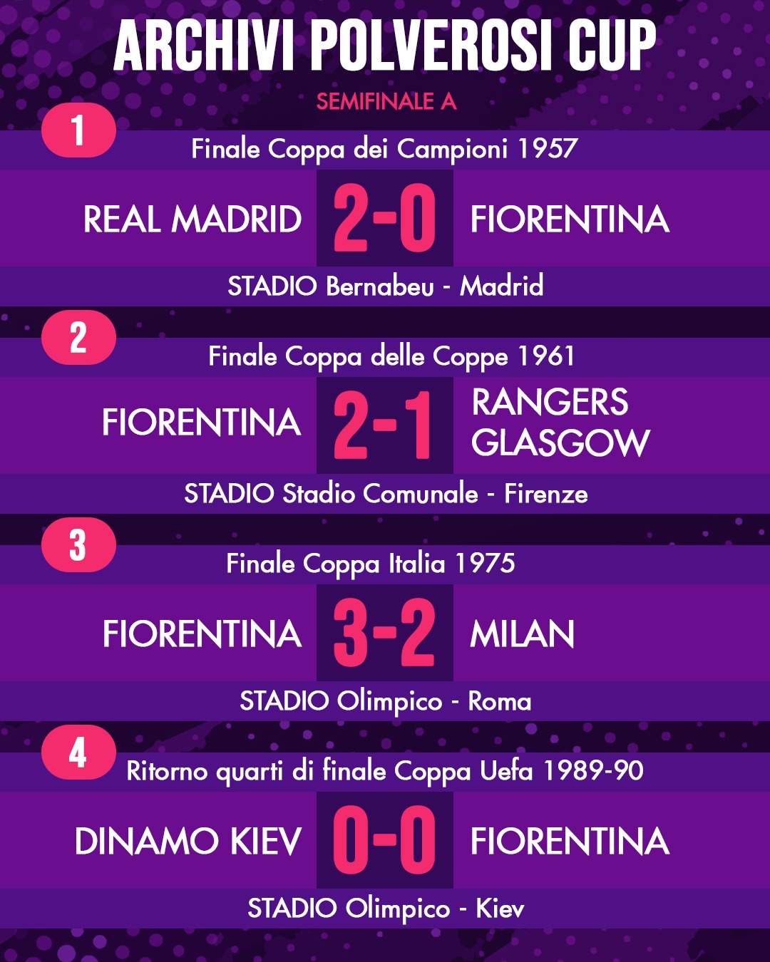 La Archivi Polverosi Cup è un’occasione per ricordare e rivivere insieme le più belle partite europee della storia della Fiorentina. Al termine della stagione di Archivi Polverosi, la trasmissione dedicata alle sfide più epiche del club viola a cura di Alberto Polverosi e Giacomo Guerrini, abbiamo infatti deciso di istituire una competizione in cui gli ascoltatori di RadioFirenzeviola e i lettori di Firenzeviola.it saranno i veri protagonisti.