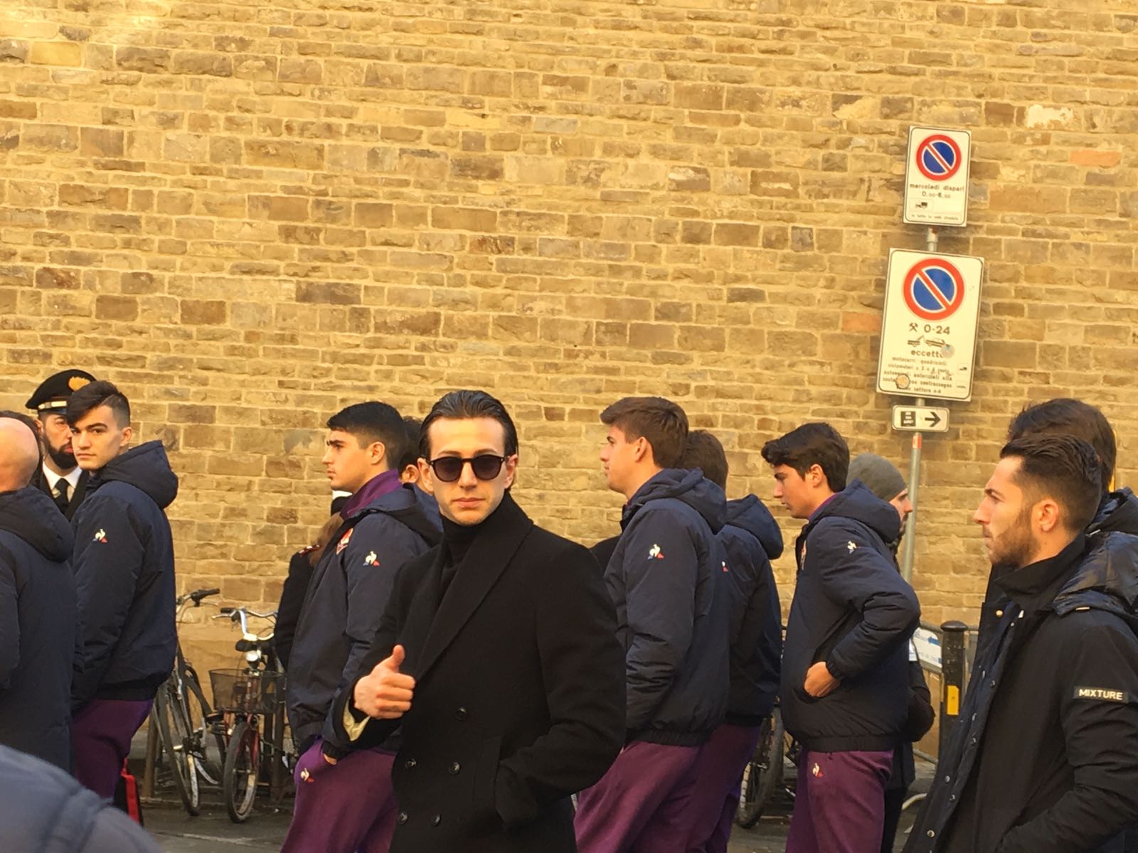 09:15 - Ed ecco la squadra, con i giocatori viola in abito nero pronti al funerale del loro capitano