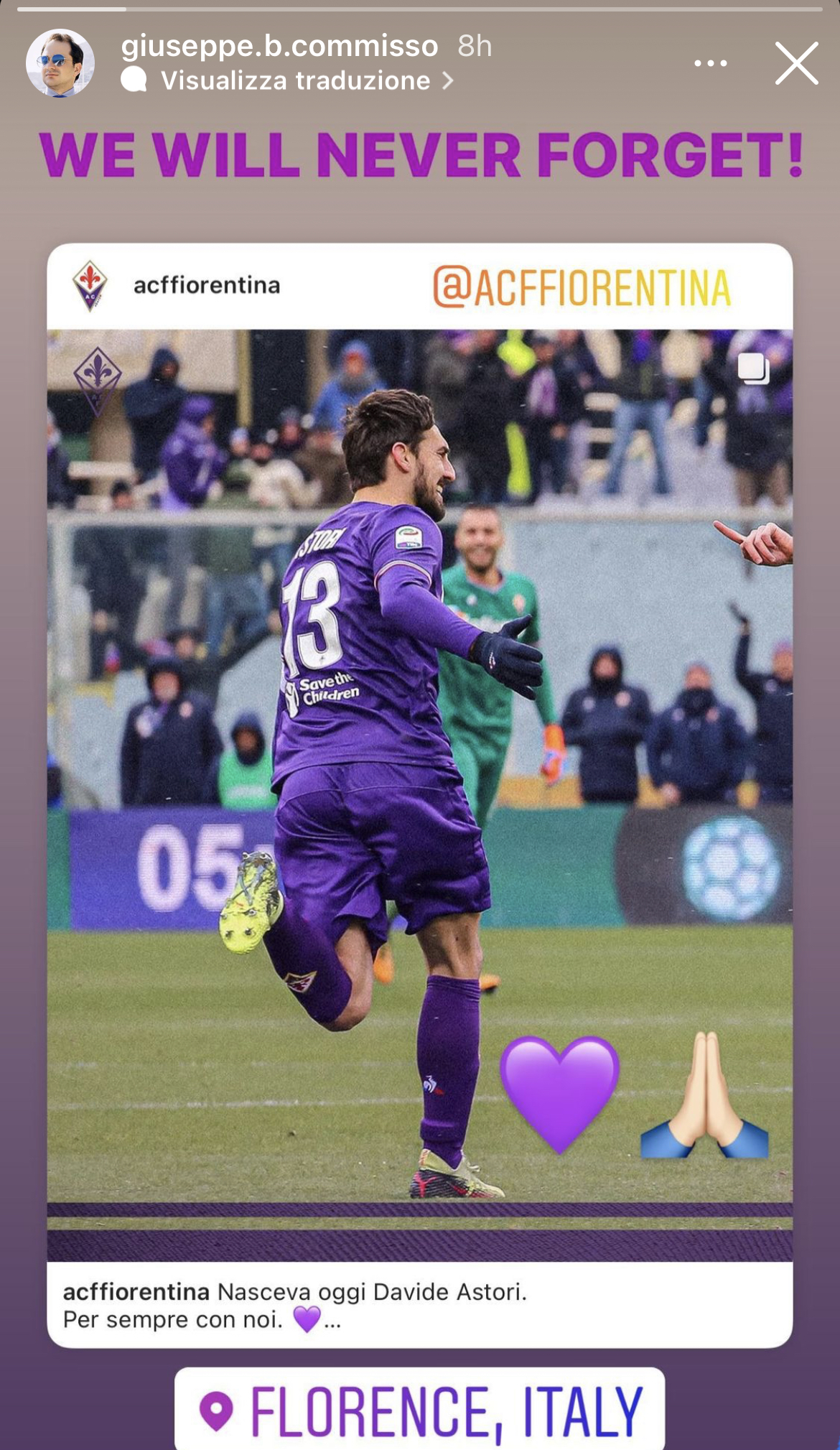 "Per sempre con noi" è la frase con cui tanti ex viola e molti altri hanno voluto ricordare Davide Astori nel giorno di quello che sarebbe stato il suo 35esimo compleanno. L'eterno capitano viola, scomparso tragicamente quel maledetto 4 marzo 2018 è stato ricordato attraverso i social network da moltissime persone tra cui calciatori, dirigenti e società che hanno dedicato un semplice pensiero in una giornata importante per Davide. FirenzeViola.it ha provato a raggrupparne alcuni a partire dai club nei quali ha militato, Cagliari, Roma e Fiorentina per arrivare a quelli degli ex compagni. Dalla Lega di Serie A, passando per l'ex dirigente viola Alberto Marangon e a quelli toccanti di Carlos Freitas. Ma ce ne sono davvero una moltitudine: Federico Chiesa, Dusan Vlahovic, Lorenzo Venuti, Gaetano Castrovilli, German Pezzella, Giovanni Simeone, Vitor Hugo, Nikola Milenkovic, Marco Benassi. Non solo calciatori però perché si sono aggiunti anche quelli del Museo del Calcio di Coverciano dove è custodita la sua maglia azzurra numero 13, indossata nella gara Italia-Germania del 15 novembre 2016. Davanti alla maglia, in particolare, si sono soffermate tante famiglie durante la visita per rendere omaggio ad un capitano nella vita e in campo. Anche il sindaco di Firenze, Dario Nardella lo ha ricordato postando una foto del murales di Via Canova a Firenze, a dimostrazione che nessuno si è dimenticato di lui e mai lo farà. Di seguito tutti gli auguri originali.