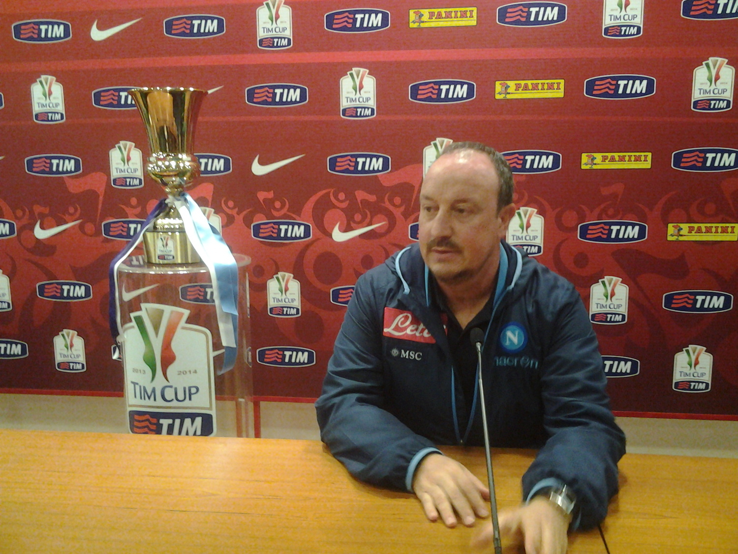 Così Rafa Benitez, allenatore del Napoli, nella conferenza stampa della vigilia della finale di Coppa Italia: "E' un trofeo importante, sarebbe una soddisfazione per tutti coloro che tifano per il Napoli. Per me la stagione è positiva, se vinciamo sarà anche meglio, altrimenti non cambia nulla. Cosa ci è mancato per il secondo posto? I punti... La stagione è stata positiva. Noi favoriti? No, perché io non gioco (ride)... Andiamo in campo unidici contro undici, la Fiorentina è una squadra con qualità, che gioca un buon calcio. Come si affronta la finale? Un po' di qualità, un po' di fortuna. Dovremo essere noi stessi, e avere rispetto degli avversari. Chi ha più determinazione vince. Higuain? Sta bene, si può allenare senza problema. La visita dal Papa? Molto emozionante, abbiamo visto una persona molto umile, speciale. Mi è piaciuto molto, sono impressionato. La Fiorentina? Dobbiamo vedere chi gioca, per noi non cambia molto, se loro giocano con o senza punta. Noi dobbiamo trovare i nostri spazi e fare bene. Per una finale è tutto diverso, loro ci hanno studiato, ma sarà diverso rispetto al campionato. Questa finale un bello spot per il calcio italiano? Sì, il messaggio nostro e della Fiorentina è molto positivo per il calcio, che dipendeda tv, sponsor, tifosi. Partite con gioco propositivo, offensivo, spettacolare piacciono di più. Per domani non siamo preoccupati: credo che siamo pronti. Pretattica della Fiorentina? Non so, anche noi abbiamo avuto tanti infortuni, quel che conta è che saremo undici contro undici. Sarà tutto diverso rispetto al campionato. Testa o cuore? All'inzio conta la testa, il cuore può essere fondamentale alla fine. Higuain e Hamsik sono giocatori importantissimi, che possono fare la differenza in campo. Higuain è a posto, vediamo domani cosa sarà... ".