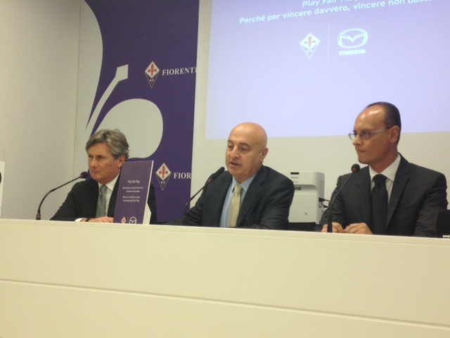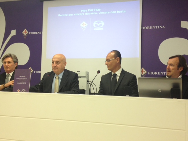 Riparte l'iniziativa del "Cartellino viola", un'attività pro-fair play promossa nella passata stagione dalla Fiorentina e patrocinata dallo sponsor ufficiale di casa viola Mazda. Quest'oggi, presso la sala stampa del Centro Sportivo, il ds della Fiorentina Daniele Pradè assieme al direttore marketing di Madza Italia Roberto Pietrantonio hanno esposto gli obiettivi della seconda fase dell'iniziativa gigliata. Assieme a loro anche il club manager Vincenzo Guerini: