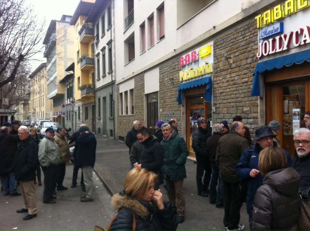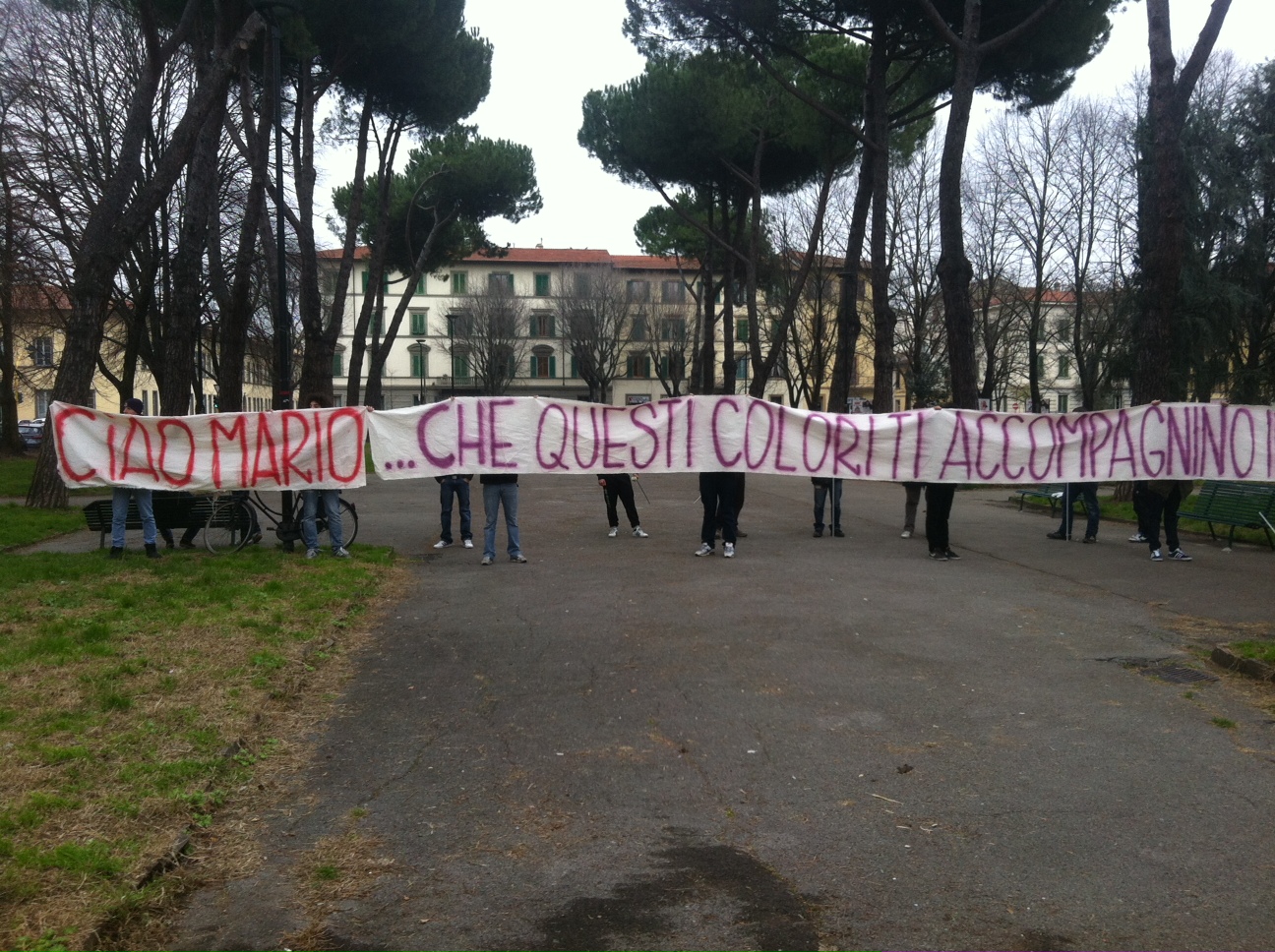 Già tanti i tifosi presenti davanti allo storico Bar Marisa questa mattina (circa una trentina), con due striscioni che sono stati appesi davanti all'ingresso del bar. Il primo è quello storico del "Viola Club Mario Fantechi - Bar Marisa", il secondo invece è dedicato a Mario Ciuffi, con una sua foto corredata da un saluto commosso. A breve la salma di Mario sarà allo stadio Franchi.