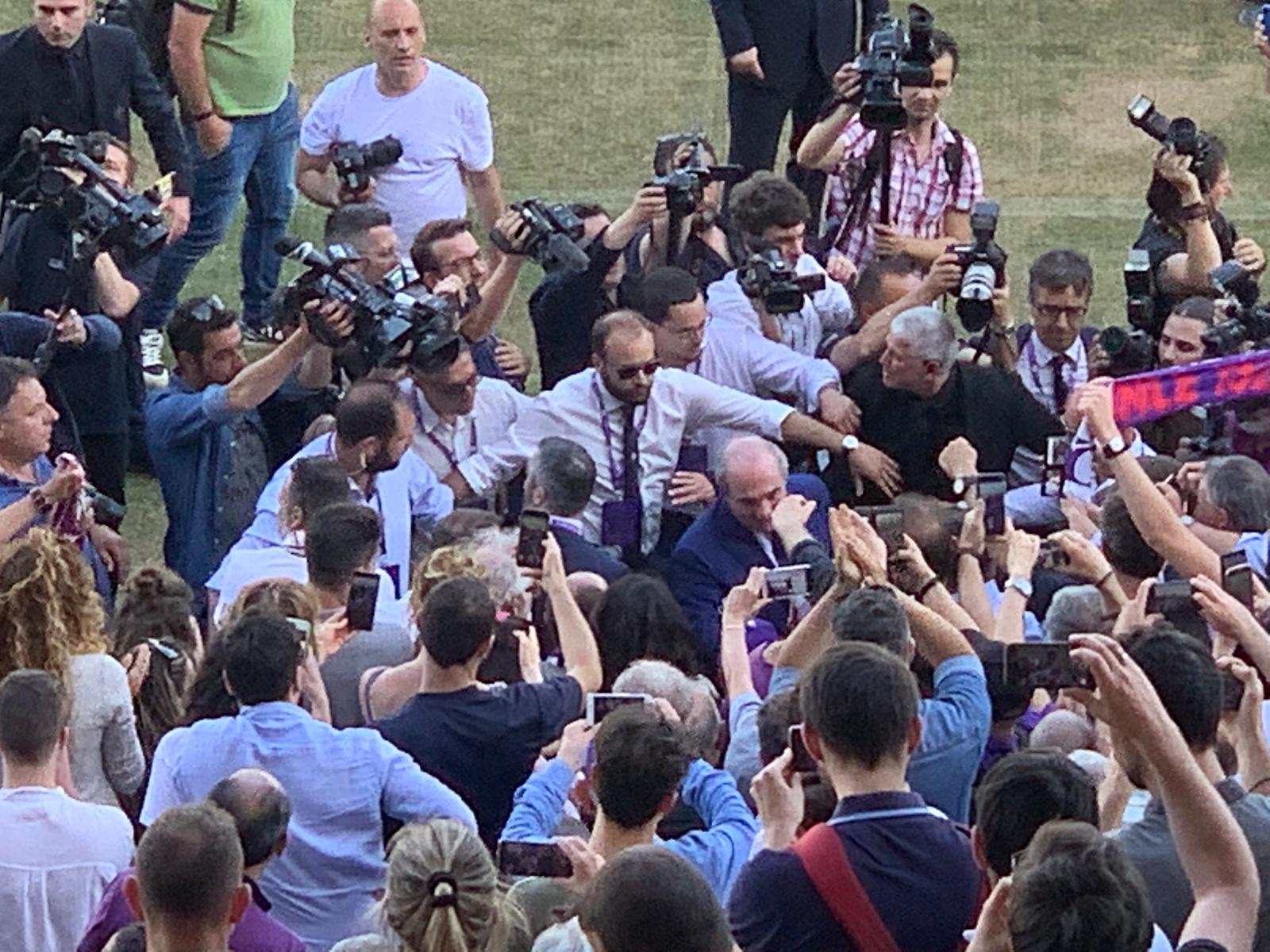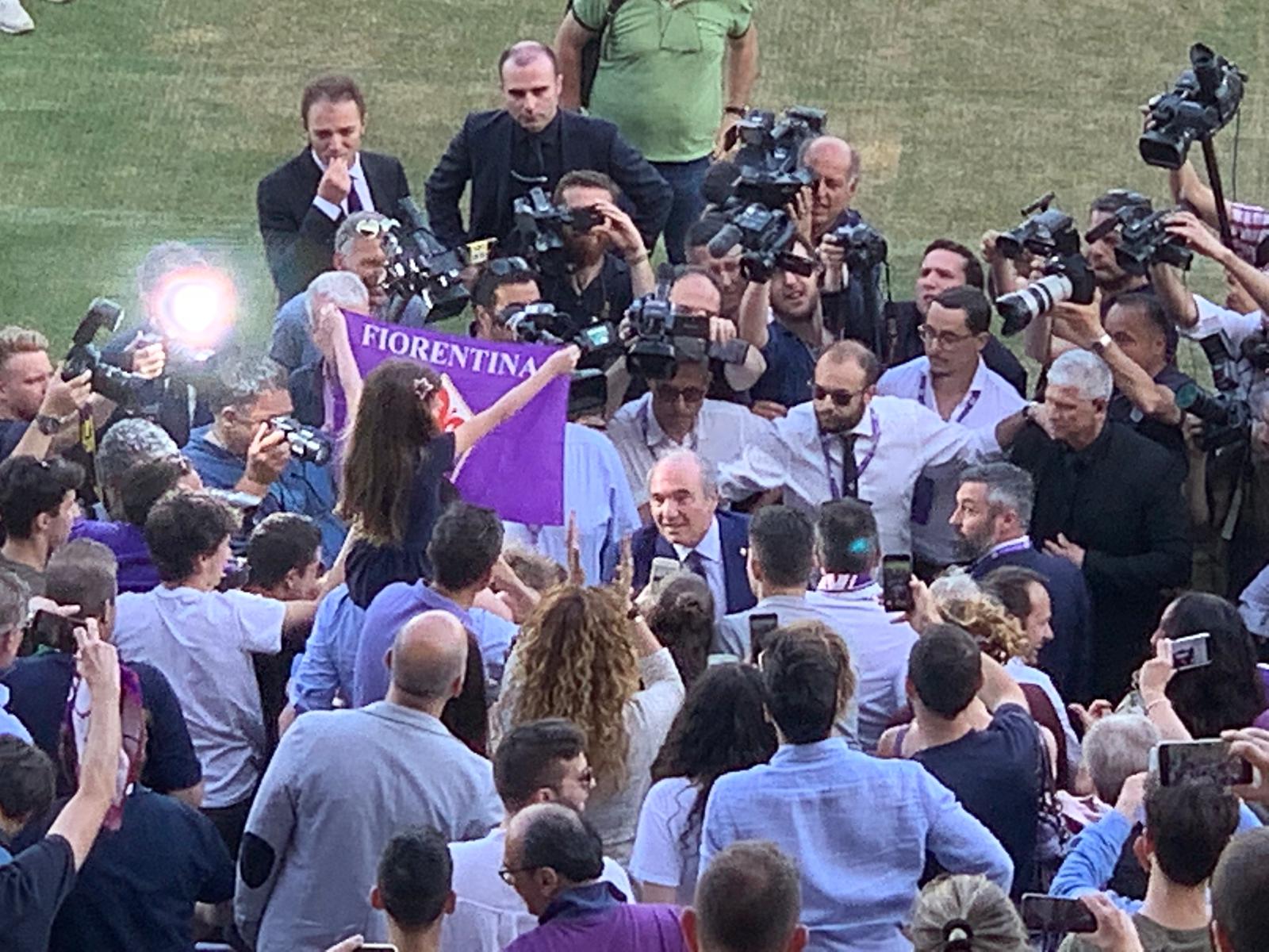 A conclusione del saluto di Rocco Commisso ai tifosi accorsi al Franchi, il nuovo proprietario della Fiorentina si è lasciato abbracciare da coloro che occupavano il settore del parterre di tribuna, baciando anche alcuni bambini sulla testa. Ecco le foto e il video di FirenzeViola.it che testimoniano il bagno di folla: