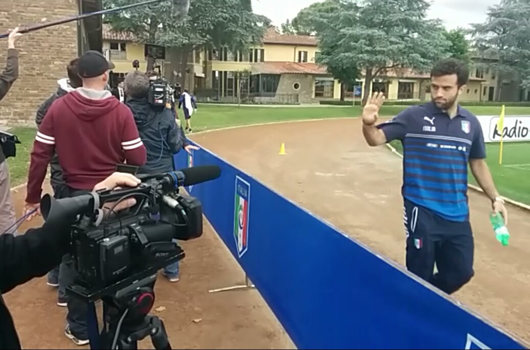 Mattinata con l'attore Pif a Coverciano, per girare uno spot pubblicitario. Intanto gli azzurri proseguono il lavoro sul campo: Giuseppe Rossi, sceso sul terreno di gioco pochi minuti fa, è stato acclamato dai bambini ospiti del Centro Tecnico e ha risposto con un saluto. Ecco il video FV