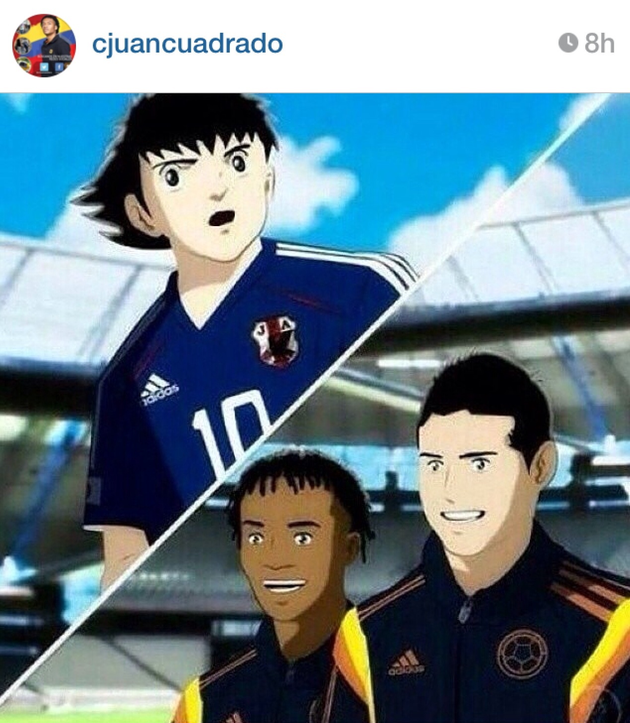 Cuadrado è ormai diventato uno degli assoluti protagonisti del Mondiale brasiliano, in virtù dei suoi già tre assist e della prima rete realizzata ieri sera contro il Giappone su calcio di rigore. E proprio per questa popolarità crescente (che non può che far felici i tifosi viola sia che JC11 resti sia che debba partire, a fronte di una grandissima offerta), l'esterno colombiano è diventato uno personaggio anche di un cartone animato sulla falsa riga di quello popolarissimo di Holly e Benji (guarda caso, giapponesi al pari dell'undici andato ko ieri sera sotto i colpi di Cuadrado, Rodriguez e Martinez). Ed il numero 11 viola ha voluto condividere il suo divertimento per questa sua particolare "caricatura" con una foto sul suo profilo Instagram, dove il giocatore viene raffigurato vicino ad Oliver Hutton e ad un altro giocatore colombiano.