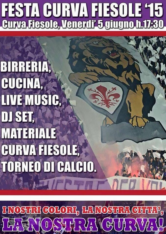 Andrà in scena, questa sera, venerdì 5 giugno, la tradizionale festa della Curva Fiesole. Cibo, musica e tanto tifo all'insegna della passione per la Fiorentina a partire dalle 17:30.
