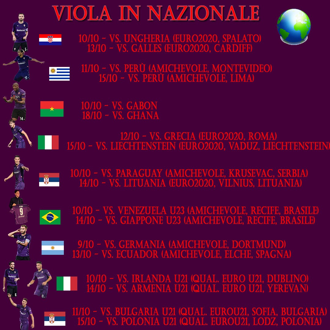 Partendo dai grandi nomi, si può dire che - in attesa che arrivi il momento di Castrovilli - i fari siano puntati principalmente su Federico Chiesa e sul suo doppio impegno con la nazionale di Mancini. Prima in casa con la Grecia, poi in Liechtenstein: gli Azzurri potrebbero davvero mettere la parola fine sulla corsa per qualificarsi ai prossimi Europei, e il suo contributo potrebbe essere fondamentale. Ci sono però anche i sudamericani: Pezzella, Caceres e Pulgar sono infatti stati convocati rispettivamente da Argentina, Uruguay e Cile. Tanta curiosità anche su cosa potrà fare Pedro, ancora mai visto nella Viola dei "grandi", con la selezione olimpica del Brasile, la Under-23.