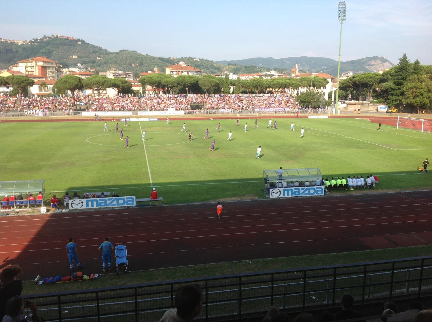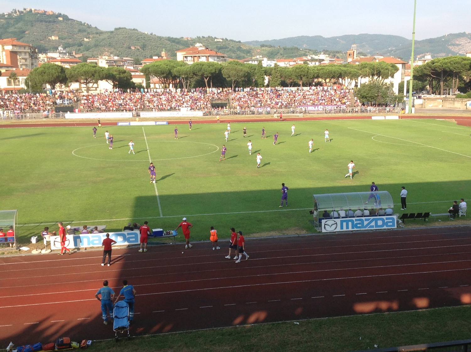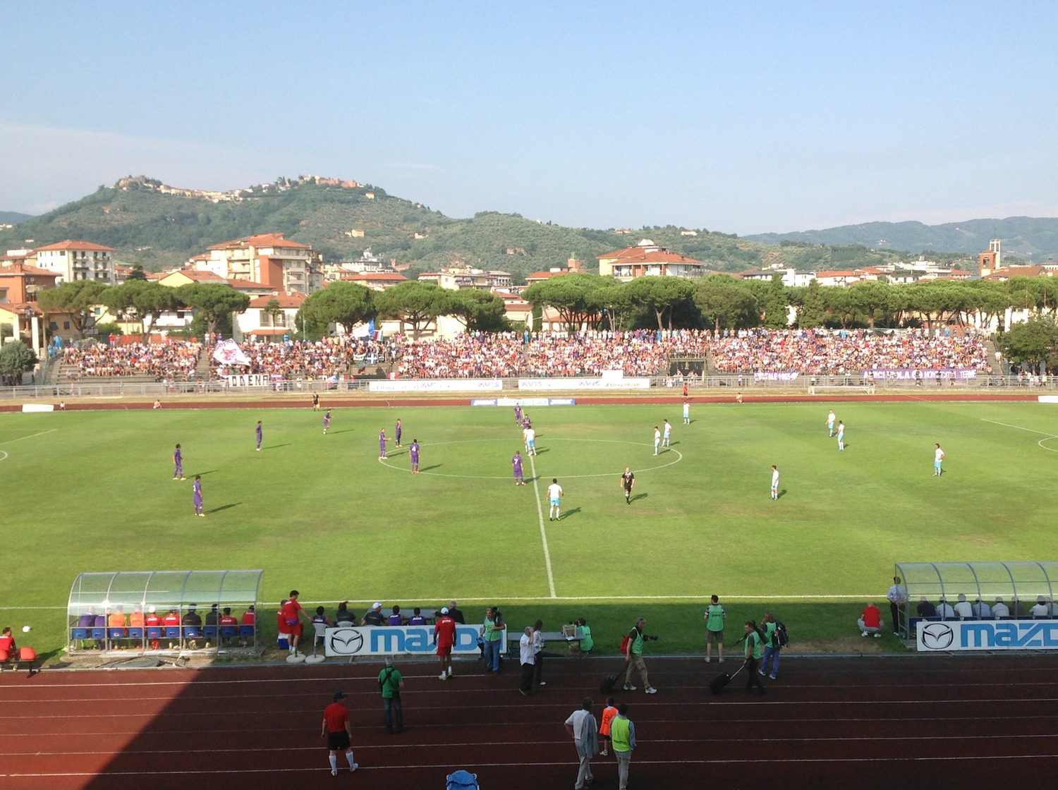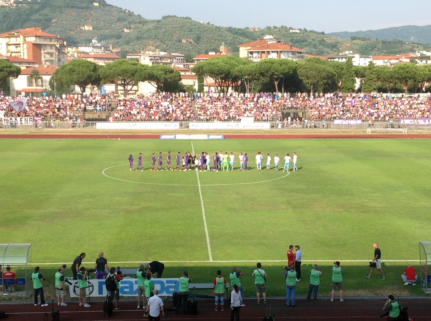Si conclude quest'oggi il preritiro della Fiorentina a Montecatini. Alle 18 è prevista l'amichevole con la formazione locale (che milita in Promozione). Si tratta della prima uscita stagionale della Fiorentina 2013/2014. Grandissima affluenza di pubblico con i tifosi viola che stanno già riempiendo lo stadio. Entrambe le squadre sono da poco scese in campo per il riscaldamento.