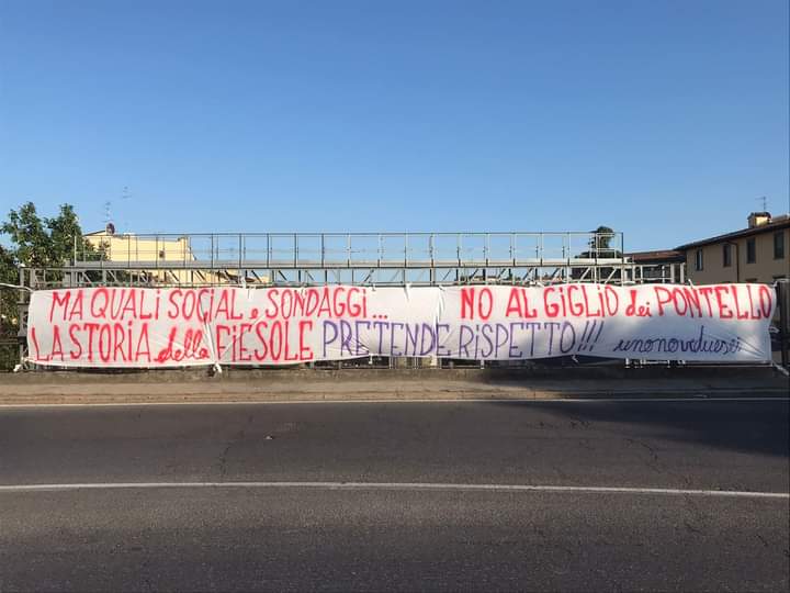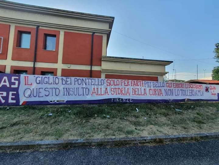 Due striscioni particolarmente critici da parte dei tifosi della Fiorentina sono stati appesi in queste ore per le vie di Firenze per contestare la scelta da parte della società viola di riproporre il giglio dei Pontello sulle nuove maglie da gioco per la stagione 2021/22, al posto della canonica losanga a forma di rombo introdotta da Cecchi Gori e in vigore fino all'anno scorso. I due lunghi lenzuoli (uno dei quali appeso sul Cavalcavia delle Cure) portano la firma dello zoccolo duro della Curva Fiesole (l'1926) e del gruppo "Quelli di Sempre" (al campo sportivo di Ponte a Greve). In Maratona, tuttavia, questa sera ci sono diverse decine di persone che hanno già acquistato (e stanno indossando) la nuova divisa griffata Robe di Kappa, che su Firenzeviola.it - nel sondaggio lanciato in questi giorni - ha ricevuto il 70% dei pareri favorevoli.