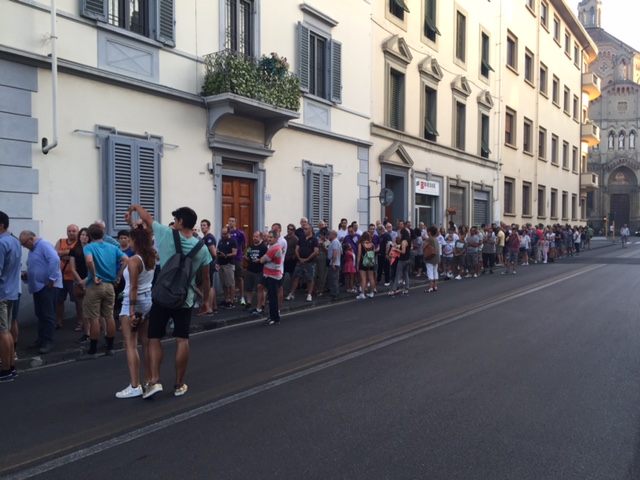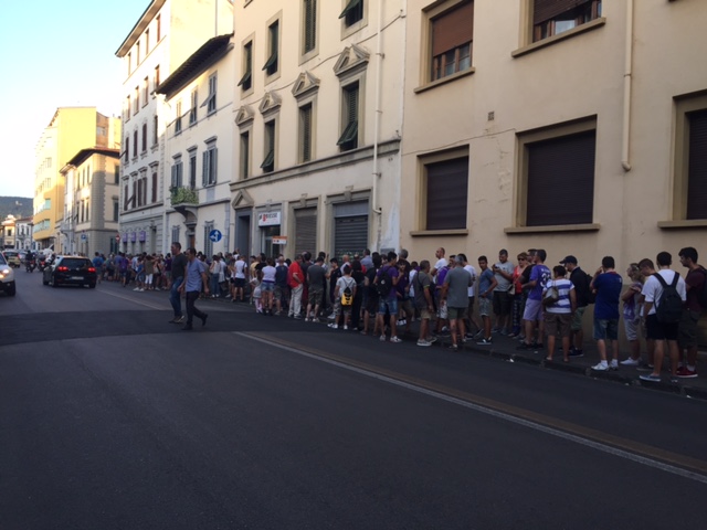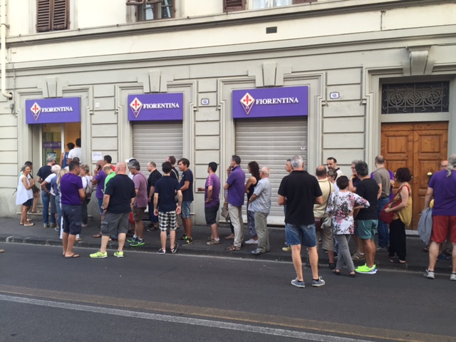 E' caccia agli ultimi biglietti per Fiorentina-Celta Vigo. Almeno 300 tifosi, come dimostrano le foto di FirenzeViola.it, in questi minuti si trovano infatti in coda dinanzi alla biglietteria dello stadio alla ricerca di un tagliando valido per l'amichevole di quesa sera. A meno di un mese dall'inizio del campionato, a Firenze c'è già grande voglia di calcio giocato.