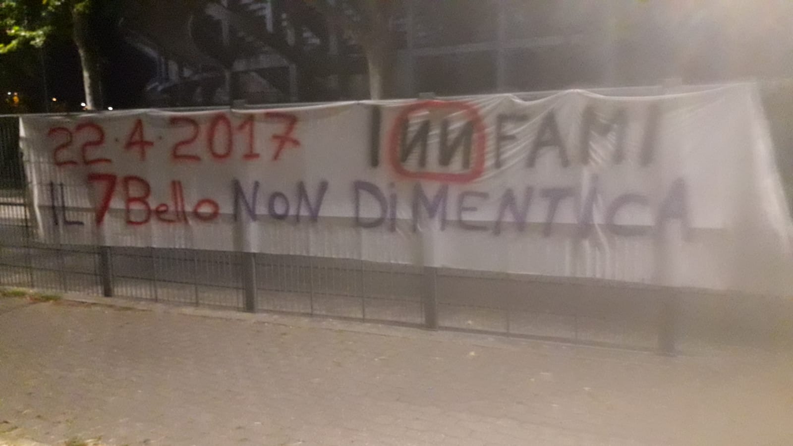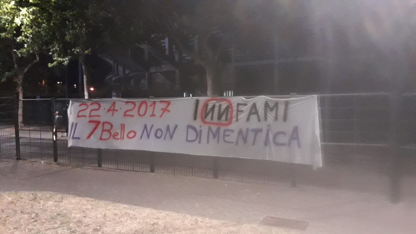 La Curva Fiesole, e in particolar modo il gruppo del 7Bello, non dimentica Marco Ficini: nella notte in cui si giocherà ad Harrison l'amichevole tra Fiorentina e Benfica, i tifosi viola hanno appeso lungo le cancellate dietro la Fiesole un lungo striscione in memoria del tifoso viola ammazzato a Lisbona lo scorso 22 aprile 2017 nei pressi dello stadio Da Luz ad opera di un tifoso biancorosso appartenente al gruppo dei No Name (ricordiamo che da oltre 20 anni il 7Bello è gemellato con un gruppo di sostenitori dello Sporting Club): "22.04.2017 - i-NN-fami, il 7Bello non dimentica" è il testo del lungo lenzuolo, con la doppia NN volutamente cerchiata di rosso e scritta al contrario in riferimento ai "No name". Ecco le foto di FV:
