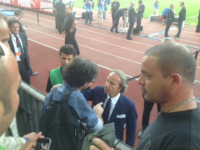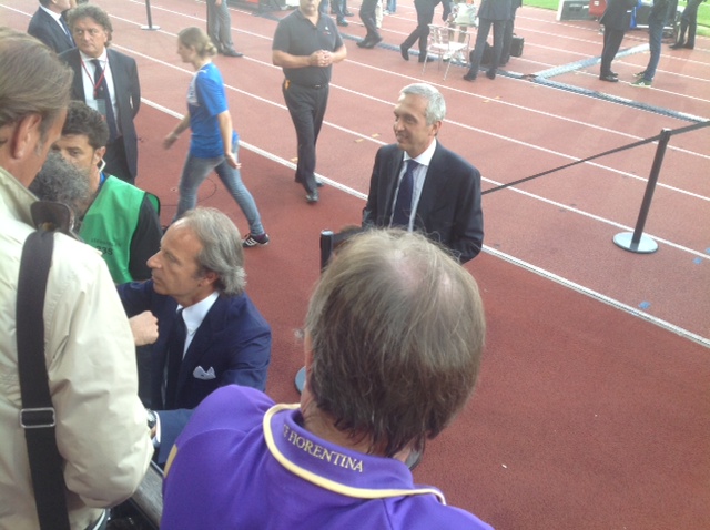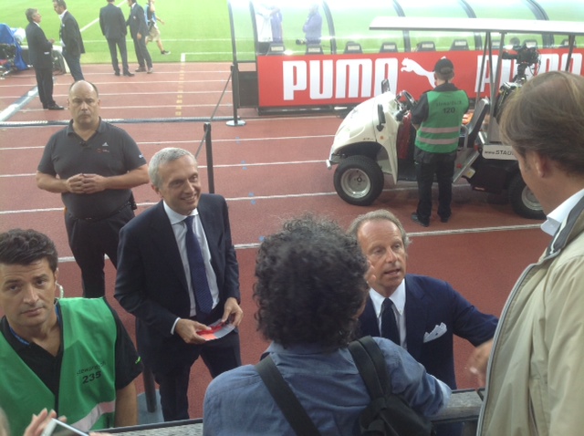 Anche il patron viola Andrea Della Valle, dopo l'incontro con Blatter avvenuto oggi, ha voluto presenziare al ritorno della Fiorentina in Europa. Eccolo nelle foto di FirenzeViola.it a bordo campo assieme all'ad Mencucci mentre saluta i tanti tifosi gigliati accorsi a Zurigo: