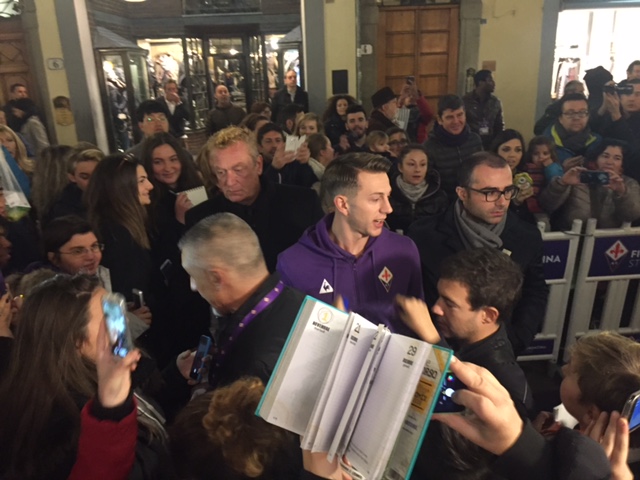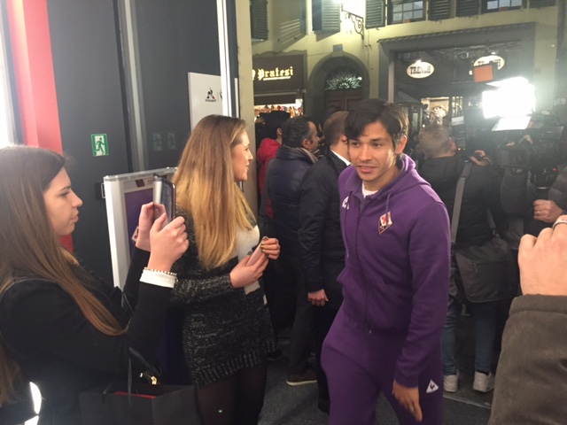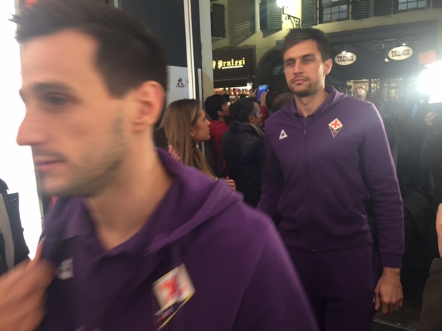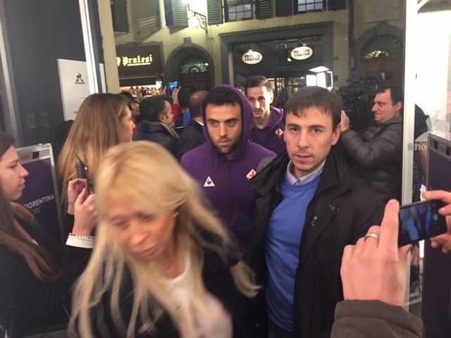 Al Fiorentina Store Duomo sono appena arrivati i giocatori, accompagnati da alcuni dirigenti. E' stato accolto con grande entusiasmo l'arrivo di Federico Bernardeschi, sommerso da un bagno di folla. Successivamente hanno fatto la loro comparsa anche Nikola Kalinic, Ciprian Tatarusanu, Pepito Rossi, Matias Fernandez e Manuel Pasqual. Attese a breve le parole di Manuel Pasqual.