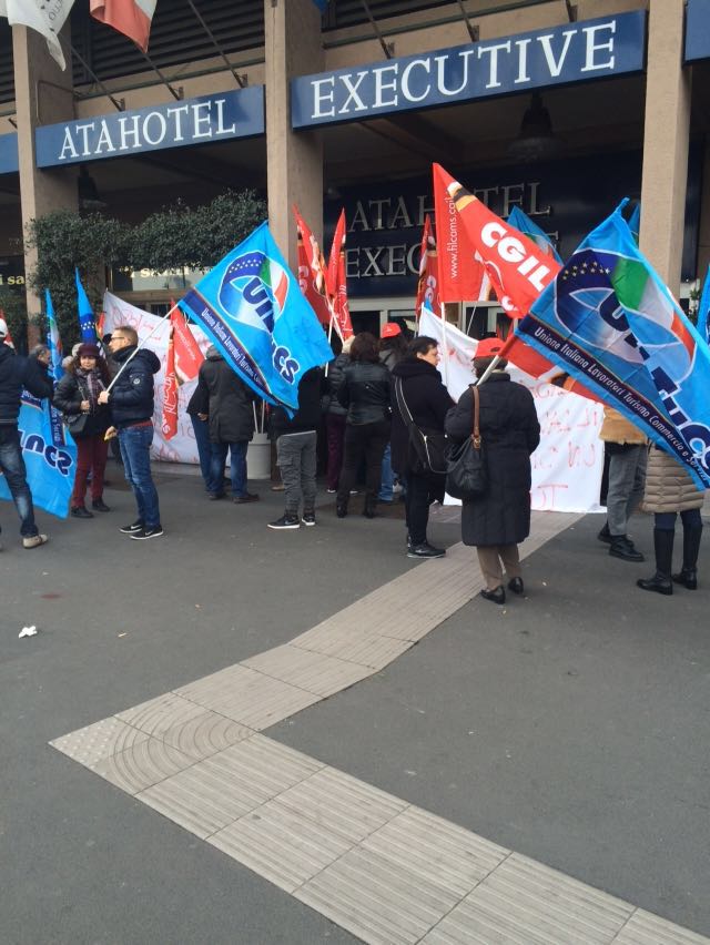Sarà l'ultima volta in cui l'Atahotel Executive di Milano ospiterà il calciomercato. L'hotel infatti chiuderà i battenti e licenzierà tutti quelli che ci lavorano. Per questo i sindacati dei dipendenti hanno organizzato una protesta per portare alla luce il loro problema, approfittando anche della presenza di tanti giornalisti.