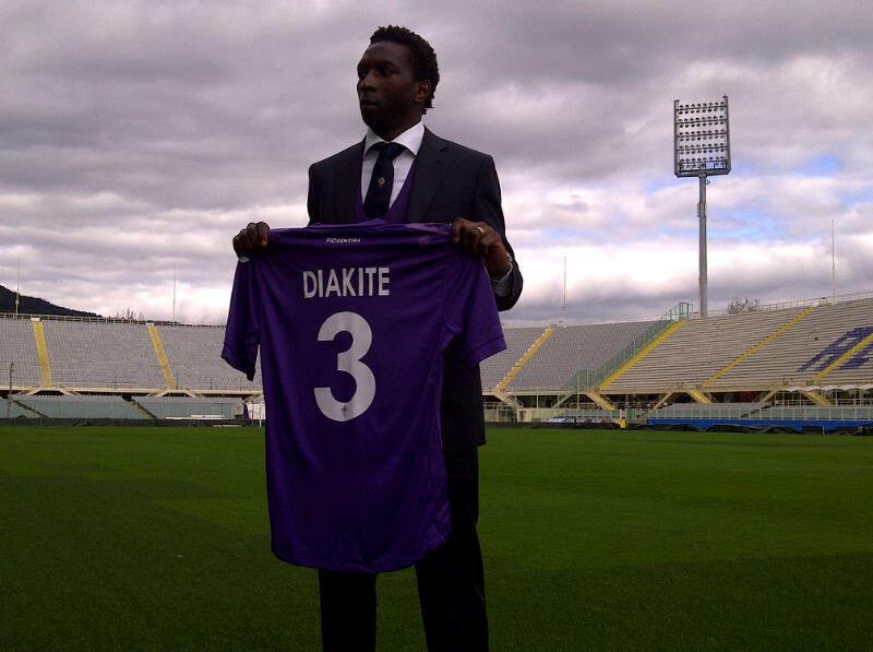 Queste le foto di Modibo Diakitè al centro del campo dello stadio Franchi con la sua nuova maglia della Fiorentina negli scatti di Firenzeviola.it:
