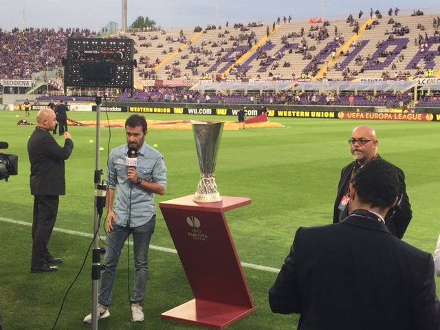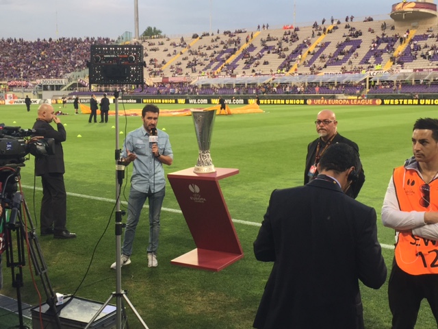 Si accende il clima all'Artemio Franchi, a poco più di un'ora dalla sfida tra la Fiorentina ed il Siviglia: a bordo campo infatti la Uefa ha scelto di posizionare l'Europa League, di cui i biancorossi sono detentori dopo il successo dello scorso anno contro il Benfica. Tante foto per il trofeo da parte dei tifosi viola e di quelli sevillisti, che sperano di potersi andare a giocare il 27 maggio a Varsavia. Queste le foto di FV della Coppa: