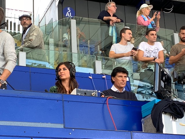 Sembra sempre più a suo agio davanti alle telecamere la fidanzata di Giovanni Simeone, Giulia Coppini: lady Cholito, com'è stata ormai ufficialmente ribattezzata, anche oggi è presente al seguito della Fiorentina e in televisione per la Rai e la nota trasmissione "Quelli che il calcio", in rappresentanza - ça va sans dire - della parte Viola. Eccola immortalata da Fv in tribuna stampa con tanto di cuffie e microfono: