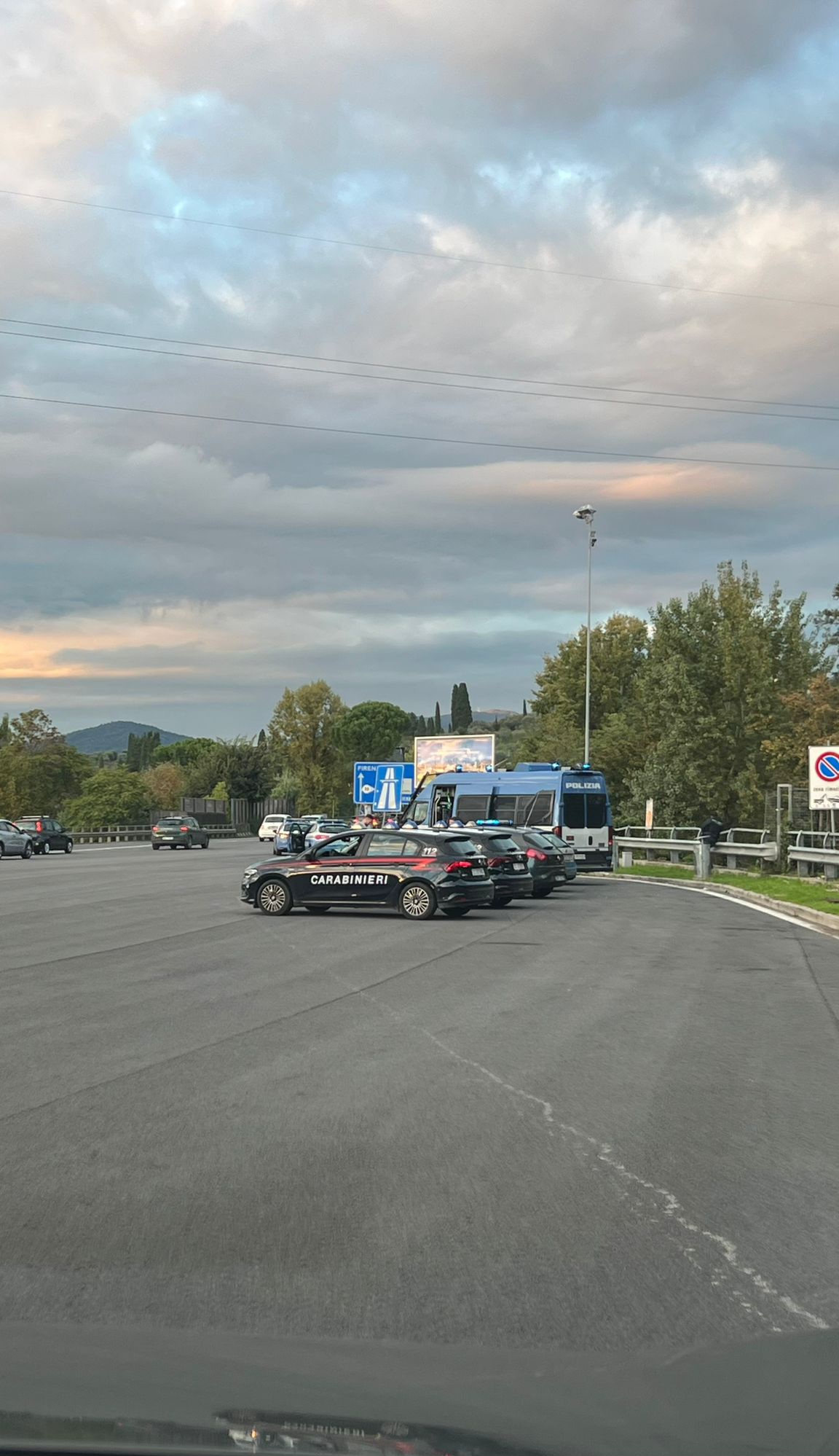 Questa sera alle 20:45 la Fiorentina ospiterà il Milan di Paulo Fonseca per il match che chiuderà la settima giornata di Serie A. Come di consueto Polizia e Carabineri sono pronti a mantenere l'ordine in vista dell'arrivo dei tifosi ospiti. Queste le immagini raccolte dalla nostra redazione delle forze dell'ordine in attesa dell'arrivo dei supporters rossoneri all'uscita di Firenze Sud: