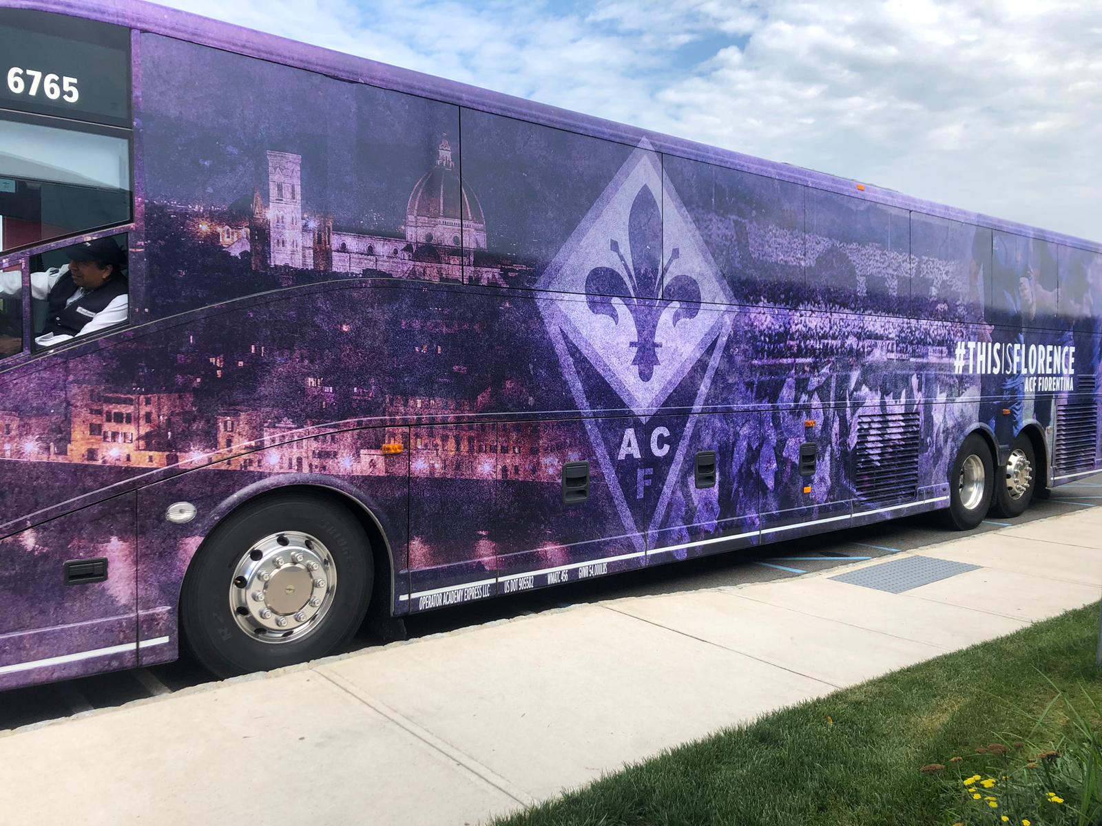 Una foto del Lungarno con il Duomo che spicca sopra è invece ciò che viene riprodotto sul lato guida con il retro del pullman invece occupato totalmente dallo stemma della Fiorentina, il tutto ovviamente su uno sfondo viola. Manca solo da verificare la fattibilità, ma l'idea di riproporre questo pullman in Italia e di usarlo per gli spostamenti della squadra durante la prossima stagione è concreta. Il tempo ci dirà se sarà anche realizzabile o meno.