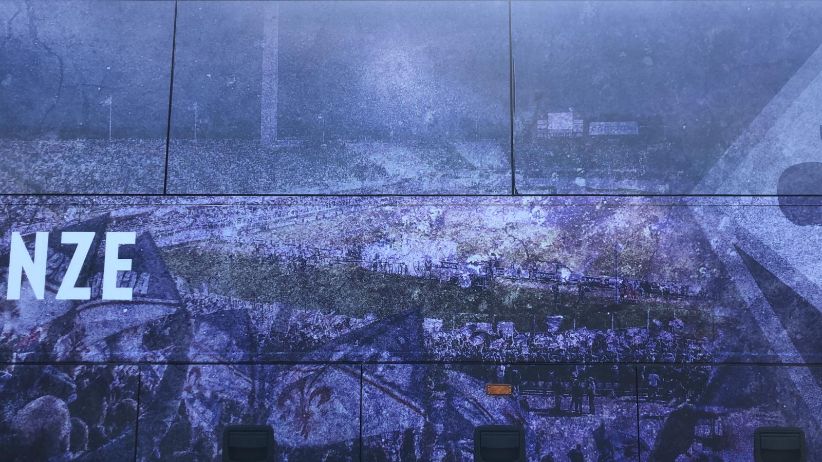 Il lato sinistro invece lascia spazio ad una gigantografia di un tecnico il quale è però raffigurato dal busto in giù e riconoscibile dal fischietto che tiene in mano, ma di cui non si conosce l'identità non essendo riprodotta la faccia. La scritte che campeggiano qua sono invece #THISISFLORENCE e ACF FIORENTINA per dare sempre una dimensione internazionale a tutto quanto. La parte più importante in evidenza però è sicuramente la coreografia dell'Artemio Franchi in occasione di Fiorentina-Juventus del '91 quando per la prima volta Roberto Baggio tornava nello stadio che lo aveva visto protagonista proprio con il club gigliato ed i monumenti splendidi e più celebri della città di Firenze.