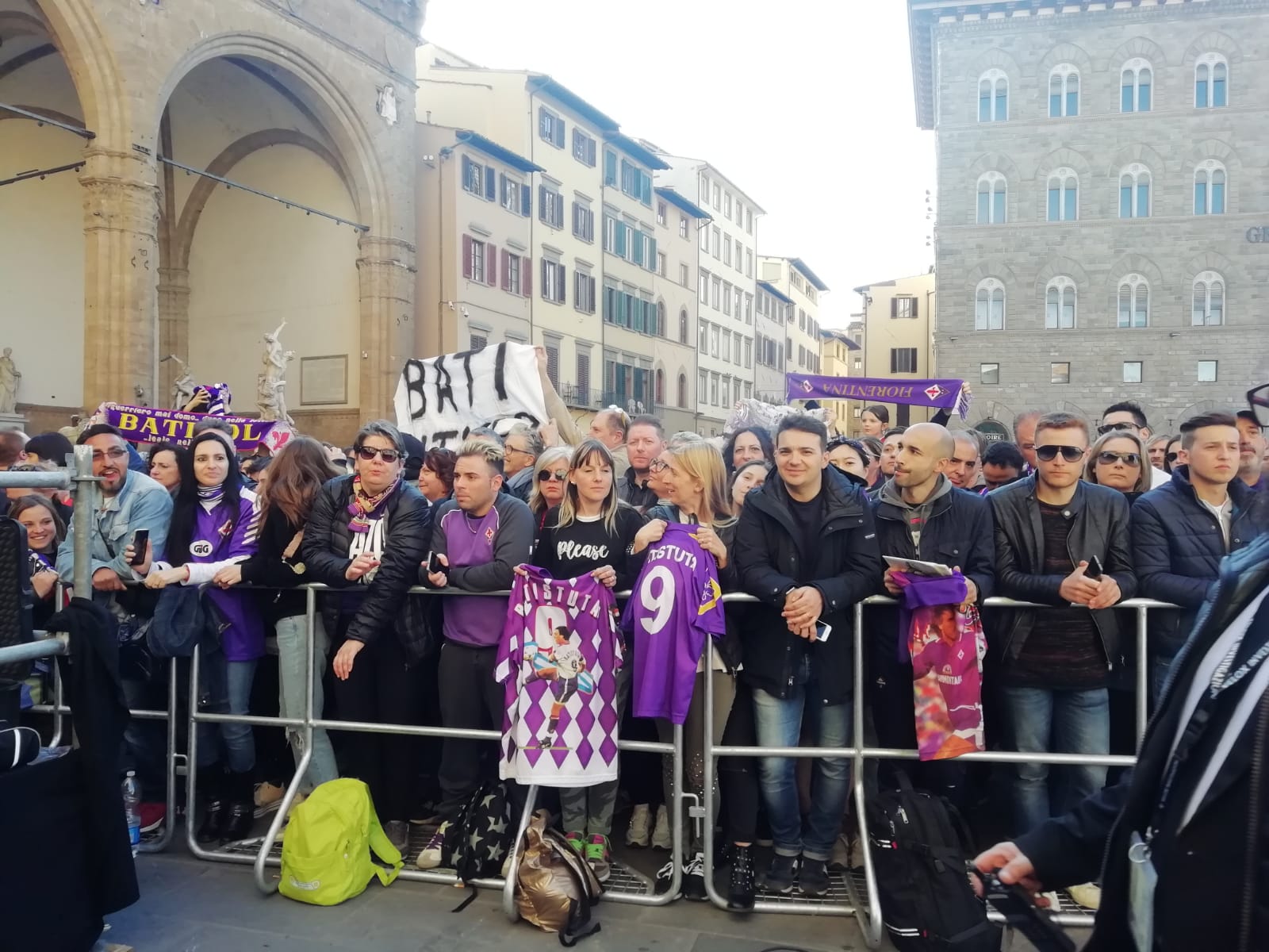 C'è tanta attesa in città per la festa dei 50 anni di Gabriel Omar Batistuta, che dalle ore 18 circa presenzierà in piazza Signoria per ricevere l'abbraccio della città che lo ha amato per tanti anni, e tuttora cominciano a farlo. C'è già tanta gente ad attendere, come si può vedere dalle foto di FirenzeViola.it qui di seguito.