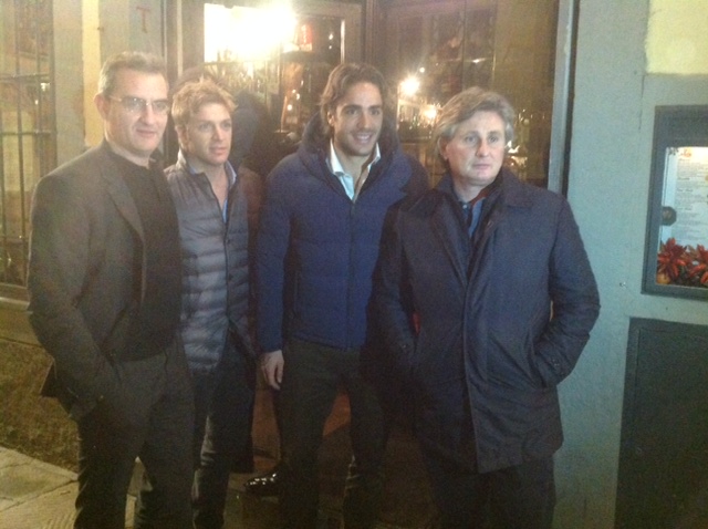 Prima serata fiorentina per Alessandro Matri, che appena arrivato a Firenze si è recato a cena con il ds viola Daniele Pradè, il dt Eduardo Macìa e il fratello Alberto, che lo ha seguito a Firenze, in un noto ristorante del centro. Sempre sorridente Matri, che si è concesso alla foto di FirenzeViola.it. Domani mattina le visite mediche del giocatore.