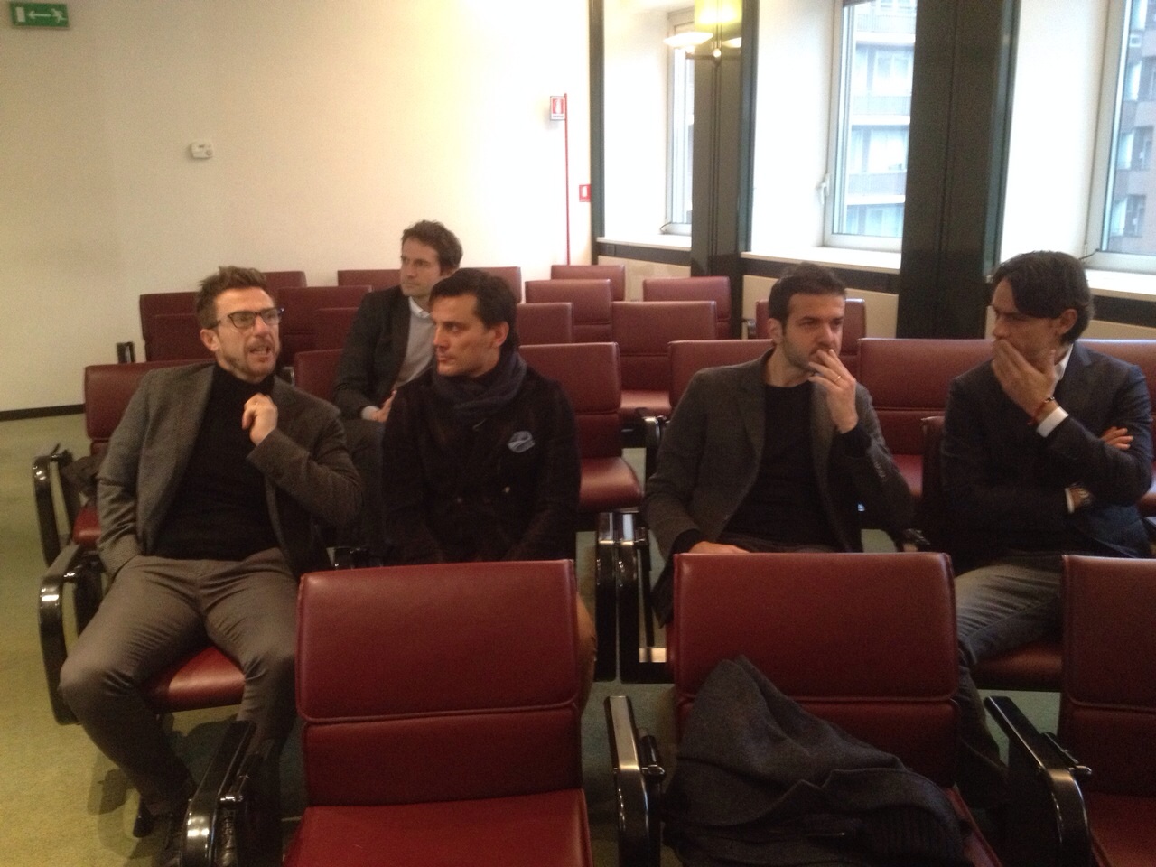 Oggi a Milano è previsto l'incontro tra gli allenatori della Serie A ed il ct della Nazionale italiana Antonio Conte per parlare degli stage e dell'organizzazione del lavoro in vista dell'Europeo del 2016. Presente anche Vincenzo Montella (LEGGI QUI), che come potete vedere nelle foto di Firenzeviola.it è seduto al fianco dell'amico Eusebio Di Francesco e di Andrea Stramaccioni. Accanto a loro presente anche Pippo Inzaghi.