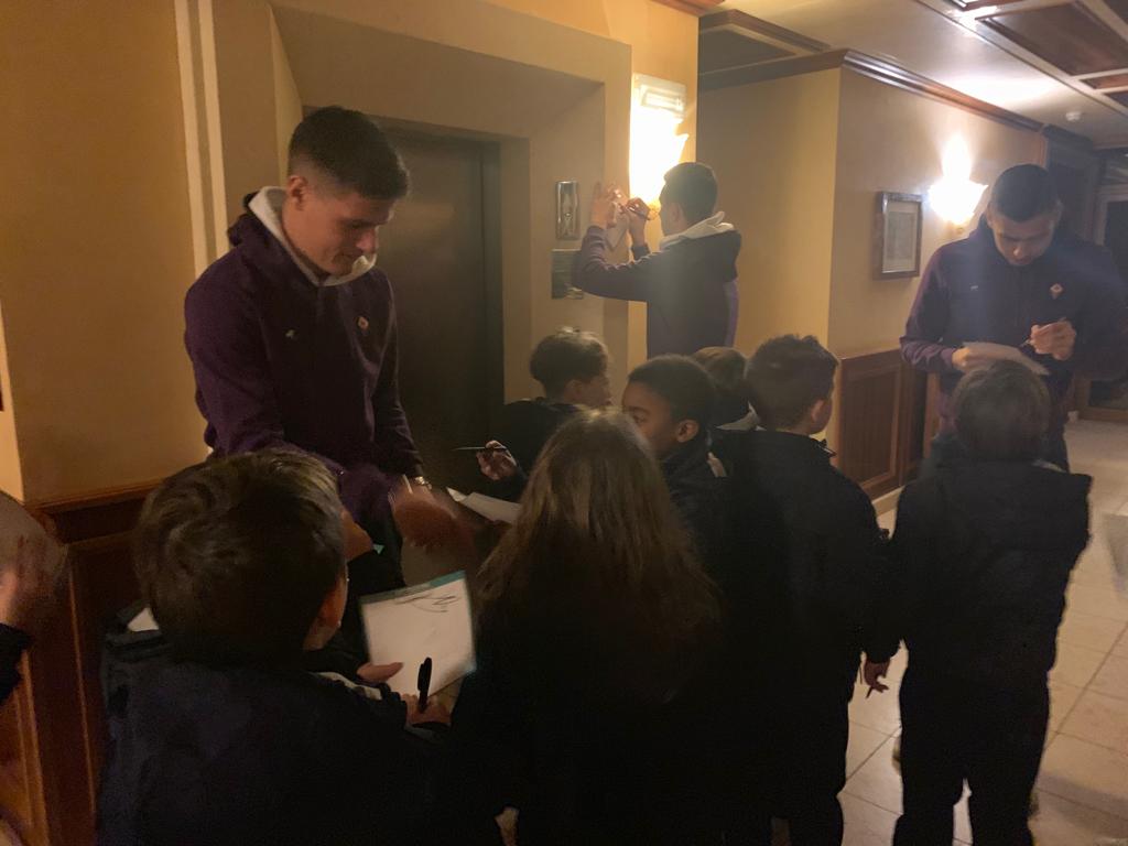 La Fiorentina in questo momento si trova a Verona in hotel visto che domani sarà impegnata nella sfida con il Chievo. Come si può vedere nelle foto raccolte da FirenzeViola.it questa sera alcuni giocatori viola tra cui Muriel, Simeone, Pjaca, Hancko e Pezzella hanno incontrato, proprio in albergo, dei bambini della scuola calcio dell'Atletica Castello, anno 2009. I bambini biancoverdi si trovano a Verona perché la società Atletica Castello è affiliata con il Chievo Verona e la squadra di piccoli tifosi si trovava lì per uno stage con la squadra gialloblu. In occasione della gara hanno fatto visita all'hotel della squadra gigliata per incontrare i loro idoli. Inoltre domani la squadra del Castello sarà presente al Bentegodi a seguire la partita.