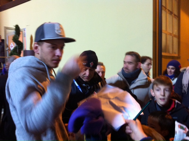 Delegazione speciale di tanti giovani tifosi per Norberto Neto: al termine della partita contro il Dnipro, circa 30 bambini hanno aspettato il portiere viola all'esterno della tribuna autorità per farsi firmare autografi e farsi fare foto assieme. Queste le foto di Firenzeviola.it: