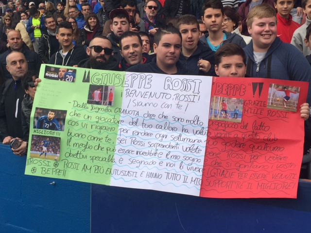 Alla presentazione di Giuseppe Rossi allo stadio "Ciutat de Valencia", alla quale quest'oggi hanno presenziato oltre 500 tifosi del Levante, era presente un gruppo di ragazzi di Valencia che hanno voluto omaggiare Pepito in un modo del tutto particolare, salutandolo cioè con uno striscione diviso in tre colori (verde, bianco e rosso, quelli della bandiera italiana), con sopra una serie di foto-collage con il numero 21 granota (con le maglie di Levante, Fiorentina e quella dell'Italia) ed un messaggio in italiano (non esattamente impeccabile) col quale gli hanno dato il benvenuto. Al vederlo, Rossi ha sorriso ed ha autografato l'opera davvero originale dei giovani tifosi.