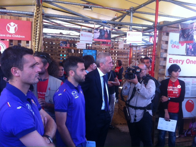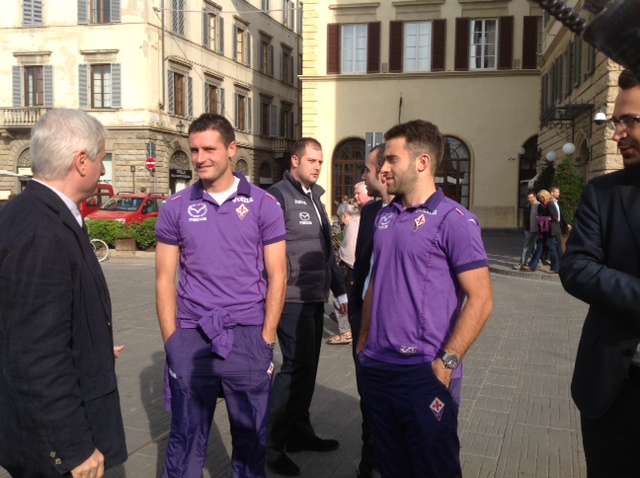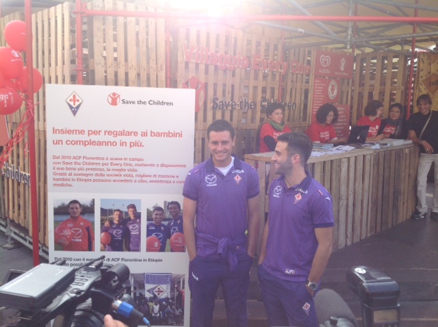 Sono arrivati da pochi minuti Manuel Pasqual e Giuseppe Rossi in piazza Santa Maria Novella. I due calciatori hanno visitato il villaggio Every One di Save the Children ed hanno ammirato i progressi fatti dall'associazione anche grazie al contributo della Fiorentina. Con loro anche l'ad Mencucci.
