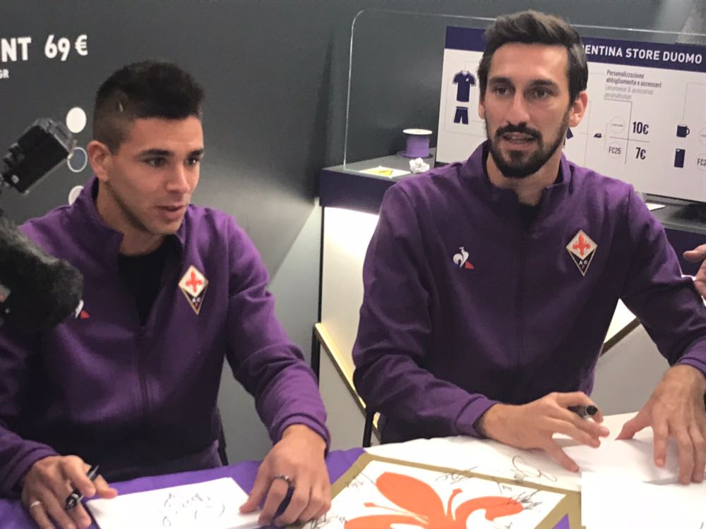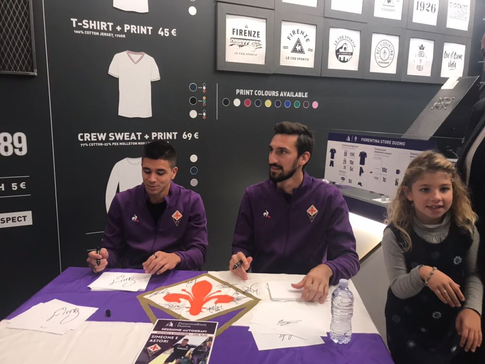Giovanni Simeone e Davide Astori questo pomeriggio hanno incontrato i tifosi viola al "Fiorentina Store Duomo". Queste le migliori foto scattate da FirenzeViola.it: