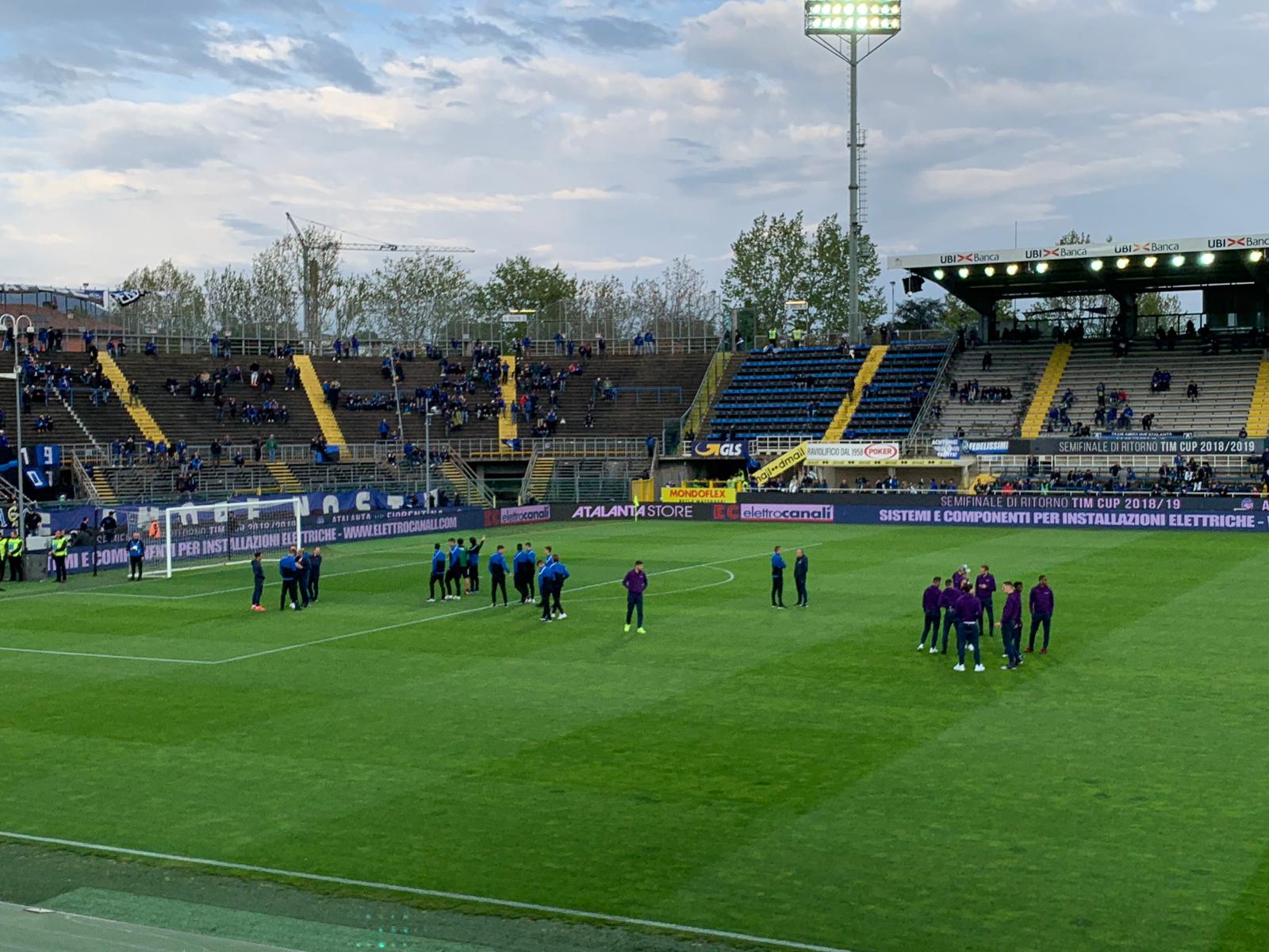 Quando manca poco più di un'ora al fischio d'inizio della semifinale di ritorno di Coppa Italia tra Atalanta e Fiorentina le due squadre hanno effettuato il sopralluogo pre gara sul terreno di gioco per valutarne le condizioni. A breve rientreranno negli spogliatoi salvo poi riuscire in seguito per il riscaldamento.