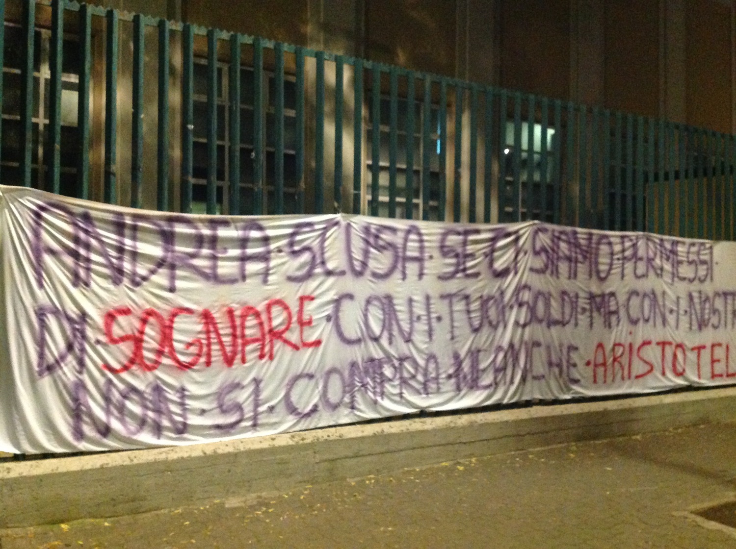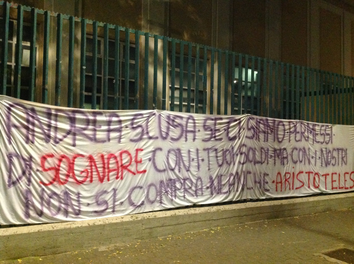 I tifosi della Fiorentina sono tornati a farsi sentire. Ai cancelli del Franchi è apparso infatti l'ennesimo striscione, ancora a firma del gruppo organizzato "7Bello" ad Adv, che richiama con ironia pungente "L'allenatore nel pallone". Andrea scusa se ci siamo permessi di sognare con i tuoi soldi ma con i nostri non si compra neanche Aristoteles" recita lo striscione.