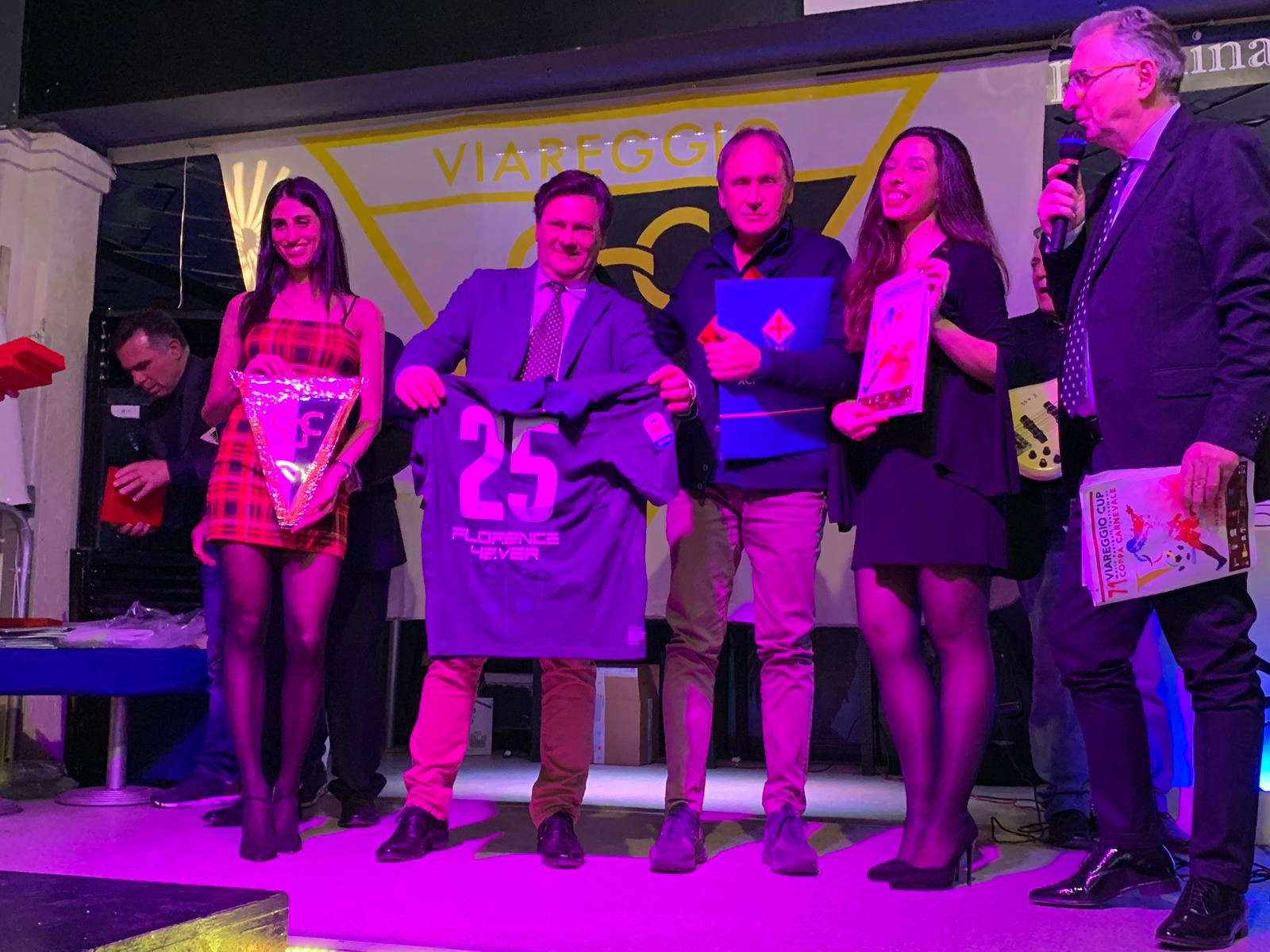 Dal palco dell'evento gala del Torneo di Viareggio ecco le foto dei rappresentanti delle squadre che affronteranno la Fiorentina nella fase a gironi: Krasnodar, Perugia e West Chester United. La dirigenza viola ha portato sul palco la maglia di Federico Chiesa, poi era presente un dirigente del Krasnodar, il Perugia che ha portato una maglia di Vido e in una foto è presente anche la squadra newyorkese del West Chester United.