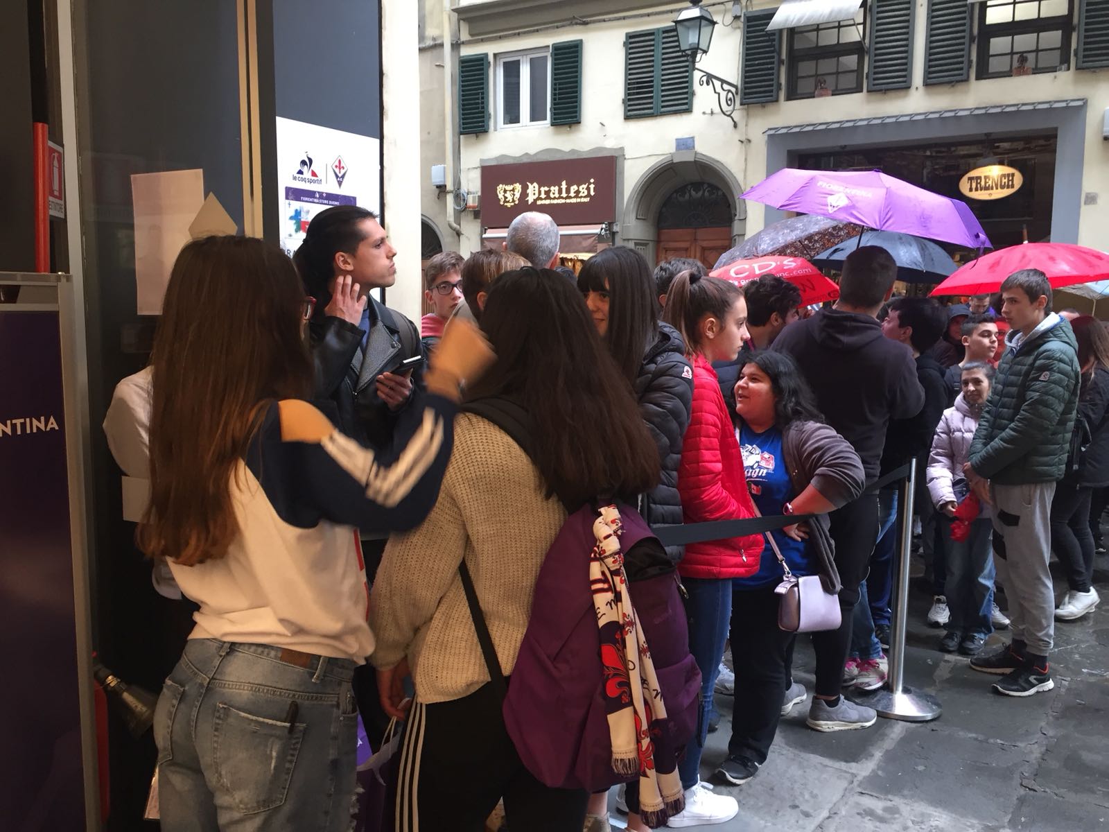 Come testimoniano le foto realizzate da FirenzeViola.it, si è già formata una piccola coda fuori dal Fiorentina Store di Borgo San Lorenzo a Firenze. Il gruppo di tifosi (circa 50 persone nonostante la pioggia) attendono Federico Chiesa e Nikola Milenkovic che dalle ore 18 firmeranno autografi.