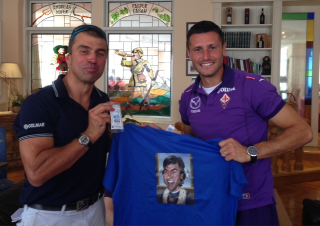 Incontro tra campioni all'hotel Dolomiti di Moena. Nella tarda mattinata di ieri Kristian Ghedina, il più forte discesista italiano nella storia della coppa del mondo di sci, ha trascorso circa mezz'ora in una sala dell'hotel insieme all'allenatore della Fiorentina Vincenzo Montella e al capitano Manuel Pasqual. Ghedina accompagnato da Matteo Lucherini, presidente della onlus Generazione Contatti e ideatore del progetto "Bevi con la testa" di cui il numero uno dello sci mondiale è testimonial, ha consegnato al mister e al capitano la maglia creata delle "Testedialkol", conosciuti ormai come i paladini del bere consapevole. Montella ha ricevuto da Lucherini anche una caricatura realizzata dagli studenti fiorentini del progetto e una riproduzione del fiorino d'oro. Nel pomeriggio lo sciatore, insieme a Matteo Lucherini, all'assessore alle politiche sociali del comune di Moena Ilaria Chiocchetti e a due giovani moenesi del progetto "Saper Essere" ha partecipato nella piazza principale del paese all'evento "Testadialkol in tour" presentato dal giornalista Fabio Irco. Lo sportivo oltre a raccontare le sue volate sugli sci a 140 km/h ha spiegato l'importanza dell'utilizzo dell'acoltest prima di mettersi alla guida.