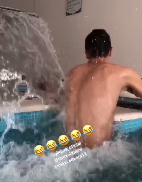 Scherzetto riuscito alla perfezione questa mattina al centro sportivo ai danni per malcapitato Rafik Zekhnini: durante la fase di alleggerimento muscolare nelle piscine dei campini, Gil Dias e Lo Faso si sono messi d'accordo per filmare ed immortalare su Instagram il talento norvegese mentre viene sommerso da una cascata di acqua... rischiando di danneggiare anche il proprio telefono. Ecco un piccolo frame che racchiude lo scherzo fatto dai due giocatori viola, che poi hanno commentato tutto ridendo: