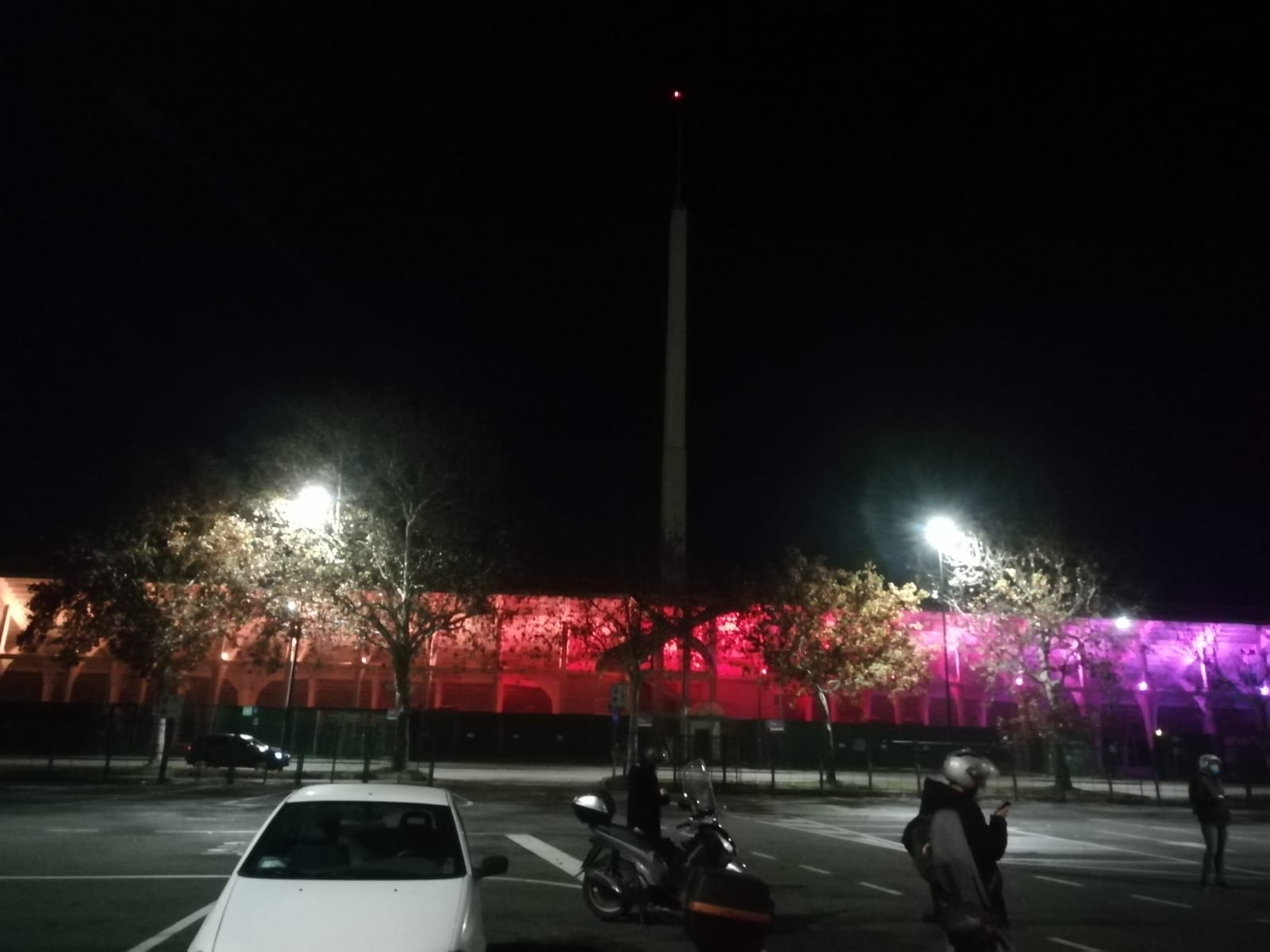 Mentre la Fiorentina, nella figura di giocatori e dirigenti, lascia il Centro Sportivo, proprio di fronte a loro lo stadio Franchi regala uno spettacolo di luci sempre molto apprezzabile ed intenso, con l'impianto illuminato dai colori che - a parte il viola - rappresentano i quattro storici quartieri di Firenze: verde, rosso, bianco e azzurro. Di seguito le immagini nella foto e nel video di FirenzeViola.it.