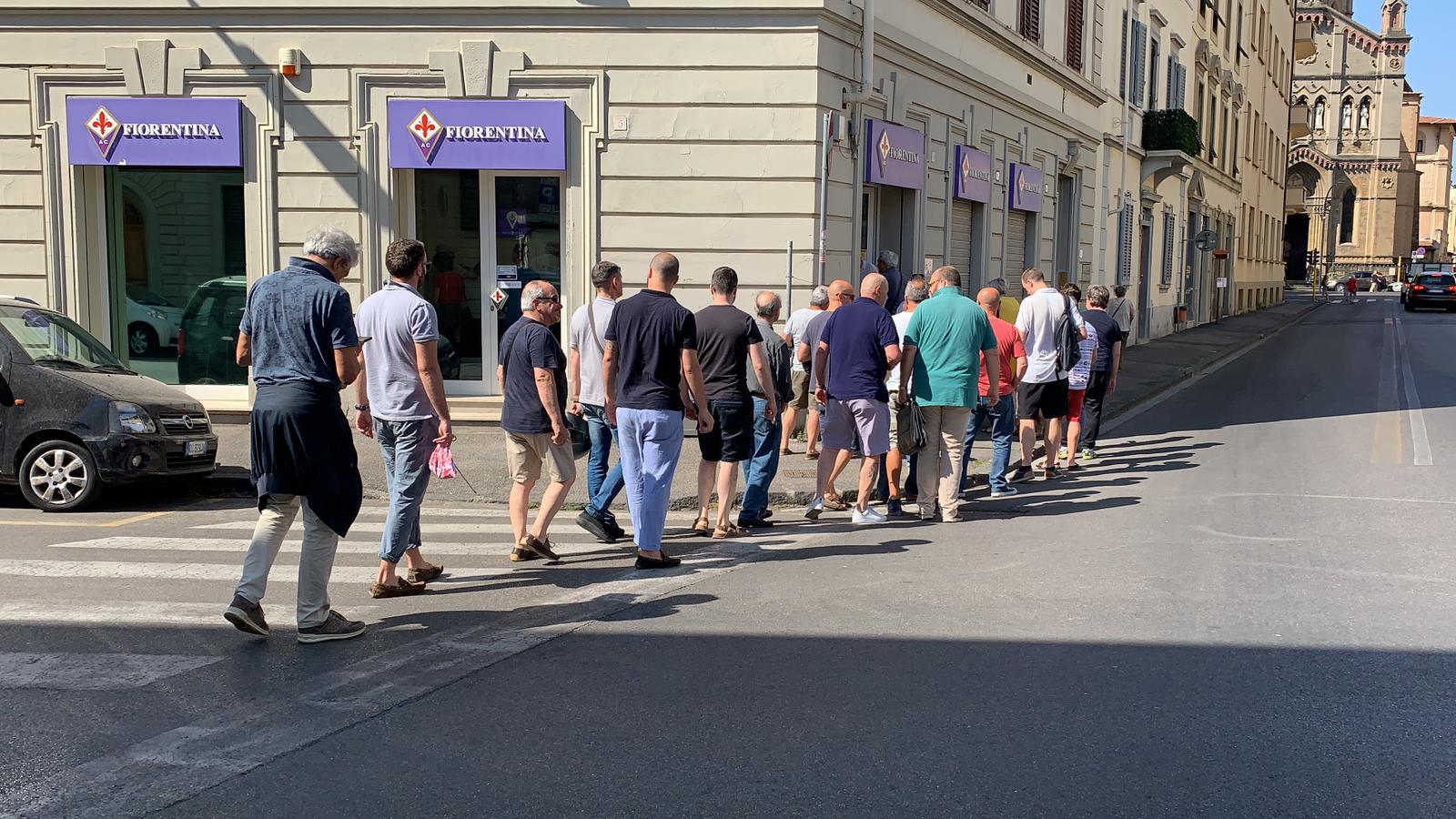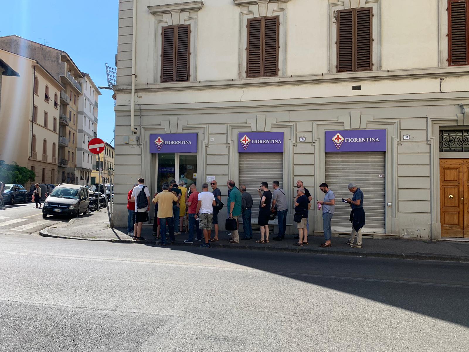 Sono stati aperti stamani alle ore 10 i botteghini di Via de' Sette Santi a Firenze, per il primo giorno di campagna abbonamenti per la stagione 2019/20 della Fiorentina. Come mostrano le foto e il video di FirenzeViola.it, poco meno di una cinquantina di persone (alcune sono già dentro gli uffici) si sono recate subito a rinnovare la propria tessera per far sentire la propria vicinanza alla squadra e alla società. In foto ritratto anche Massimo Silei, abbonato numero 1 di questa nuova campagna che, dopo anni senza fare l'abbonamento quest'anno è tornato a farlo per lui e per il figlio in Maratona. Segno dei tempi che cambiano. Ecco i contributi: