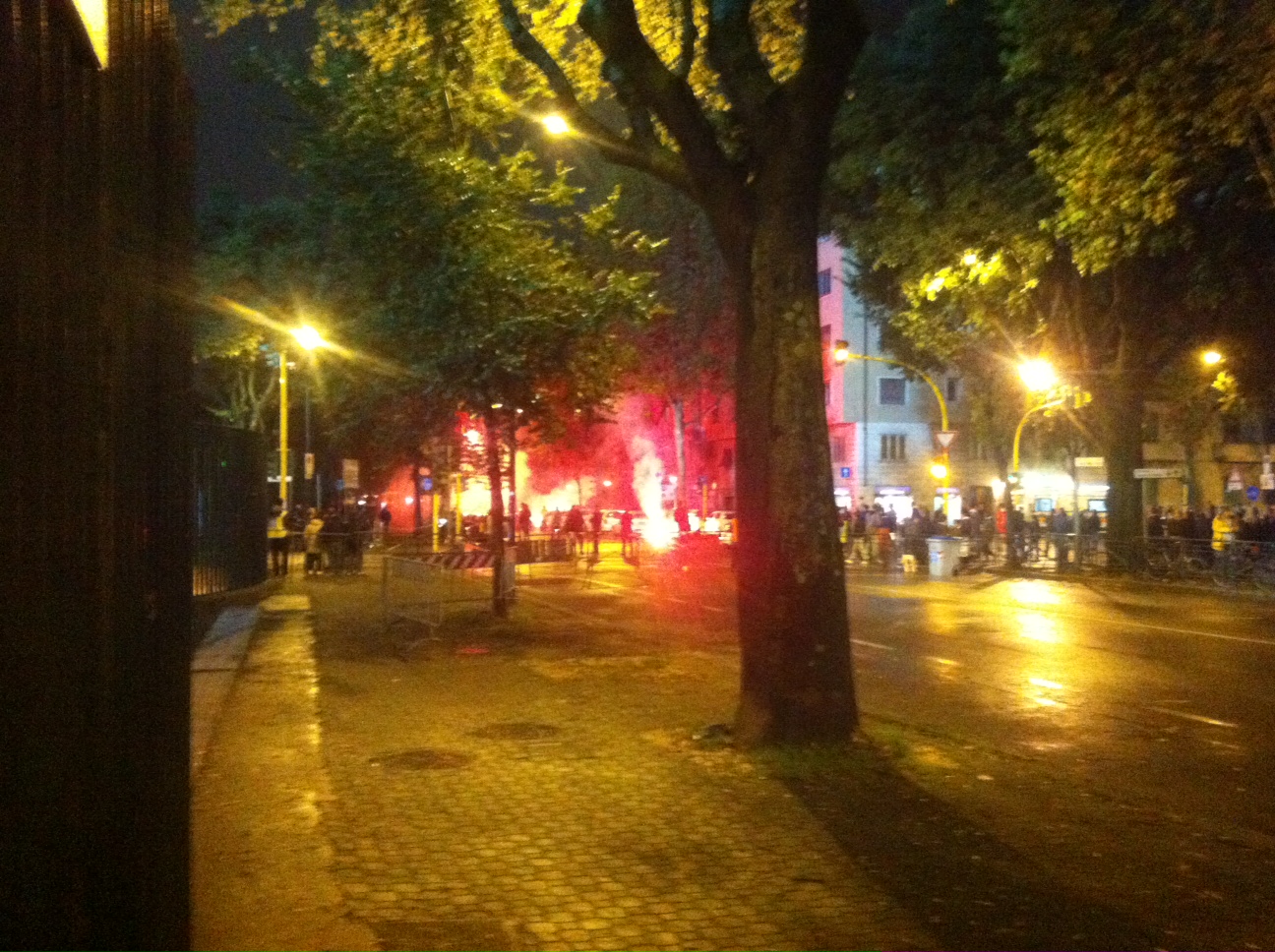 Molti i tifosi greci presenti nel settore ospiti del "Franchi" e non solo visto che sono in molti i supporter bianconeri anche in tribuna. Intanto nell'immediato prepartita, a circa una mezz'ora dal fischio d'inizio, un pullman di sostenitori del Paok ha ricevuto una particolare accoglienza nelle vicinanze dello stadio. Verso il pullman sono infatti volati alcuni fuochi d'artificio senza che comunque la situazione degenerasse troppo. Probabile che a rendere i rapporti non certo idiallici tra le due tifoserie ci sia la simpatia della tifoseria ellenica nei confronti della Juventus che, peraltro, indossa identici colori.